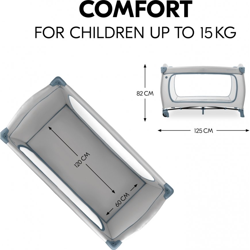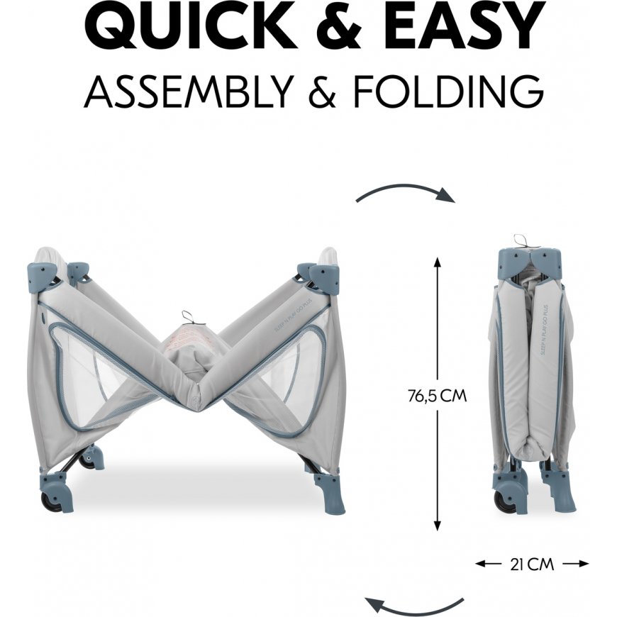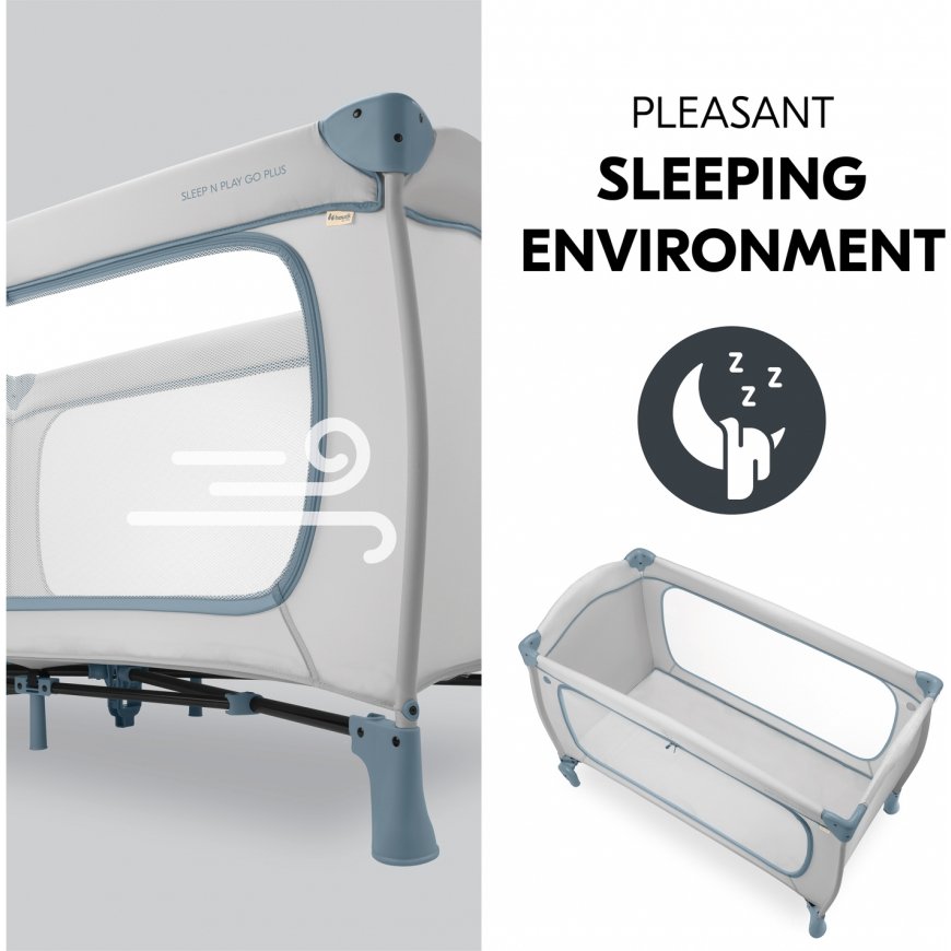 The Sleep N Play Go Plus travel cot offers safety in a timeless design for your child (up to 15 kg), and is the perfect place to play while traveling.