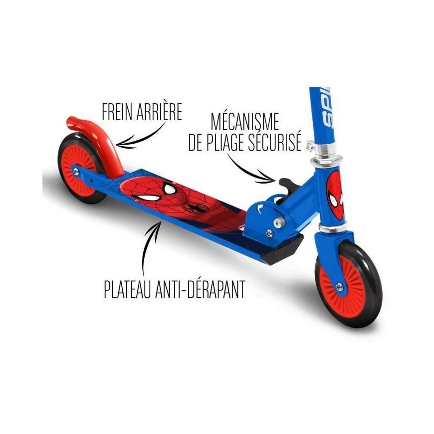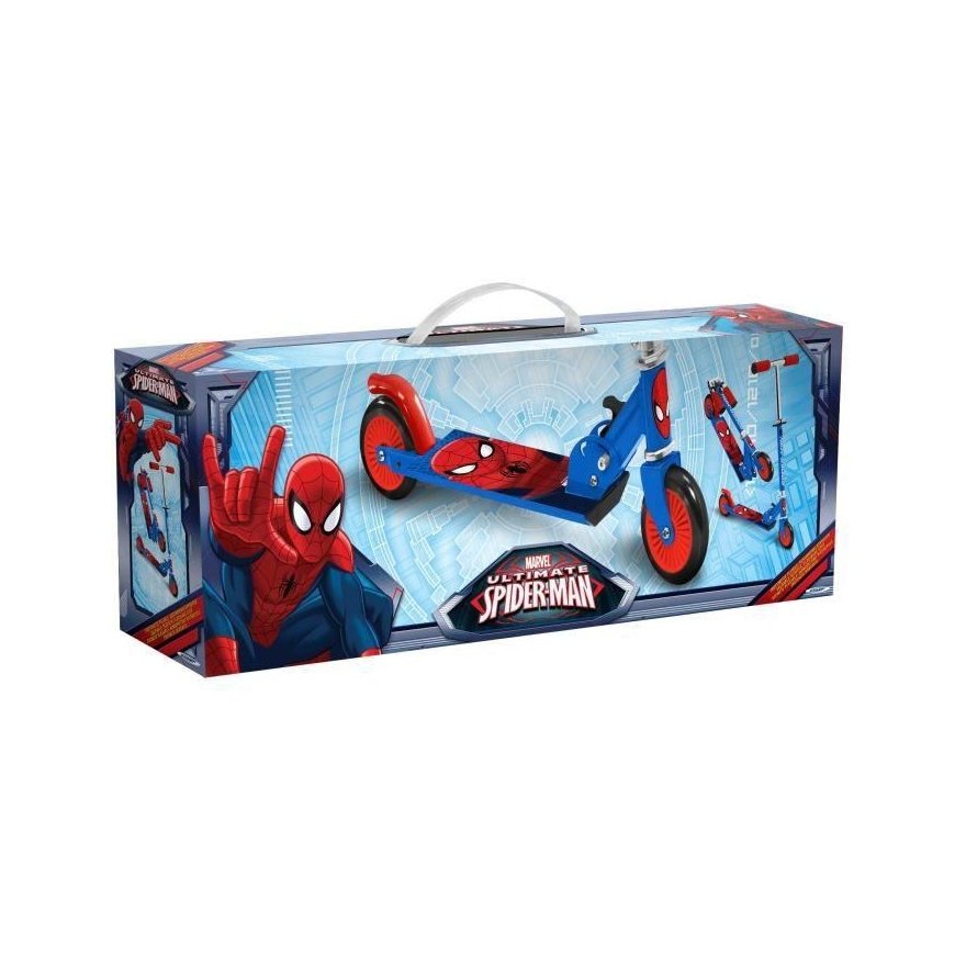 The Spiderman children's scooter with a playful Spiderman design will delight every child. The Spiderman children's scooter can be easily folded (including the handle grips), making it easy to carry. This scooter features high-quality ABEC 7 bearings, a lightweight aluminum steel frame and an on-off brake. The handlebar height can be adjusted according to the user's height. You can also appreciate the soft, foam-filled handles and the non-slip mat. All of the above makes the Spiderman children's scooter popular among little racers.