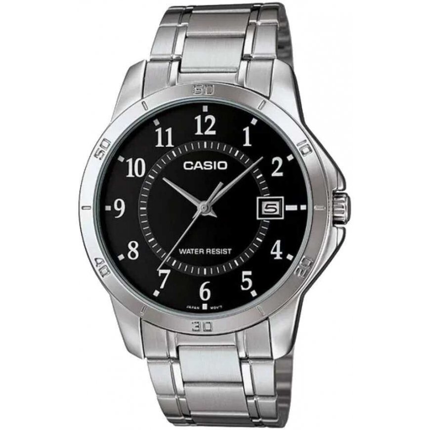 The Casio MTP-V004D-1B men's watch is an elegant choice for men who value timeless style and reliability. Its bracelet and case are made of high-quality silver-colored stainless steel, which ensures both durability and an elegant appearance. The watch's black dial complements the classic design, giving it a subtle yet expressive aesthetic.