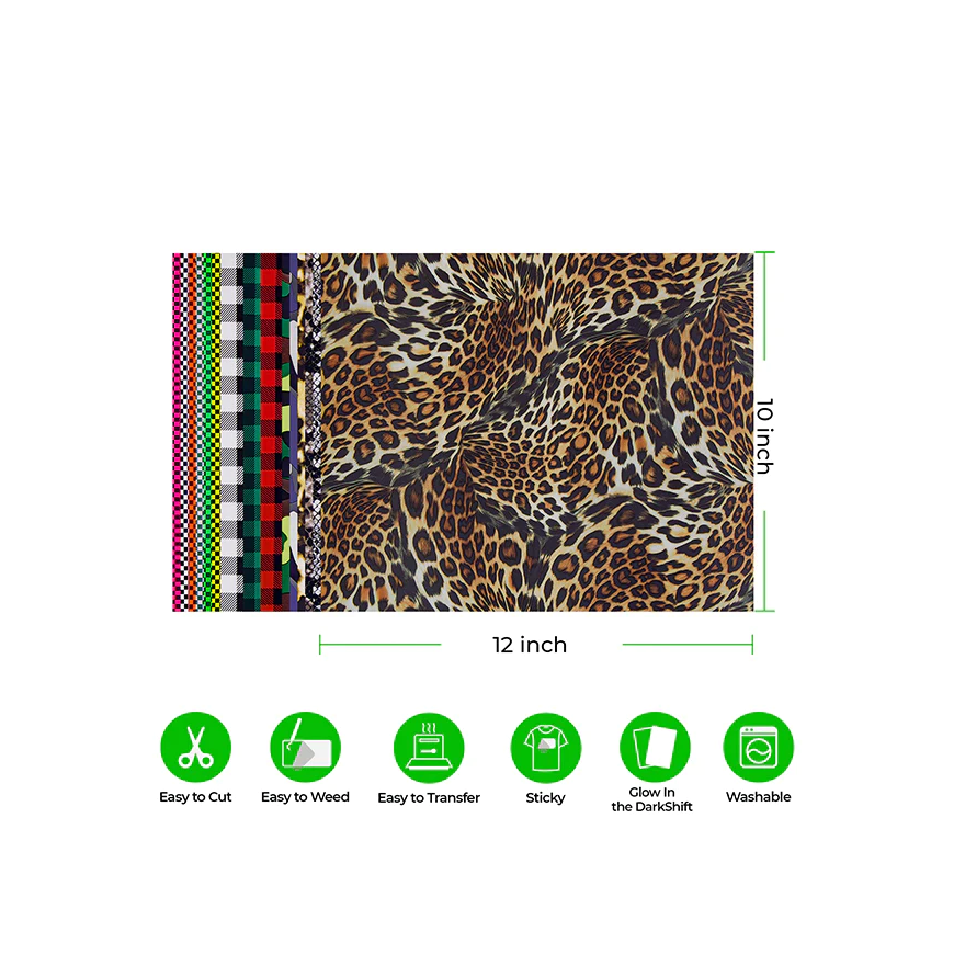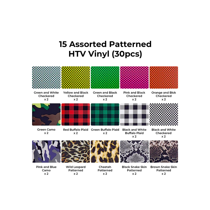 • 300x250mm (12" x 10"), PET soojuse ülekande vinüül 15 erineva mustriga.