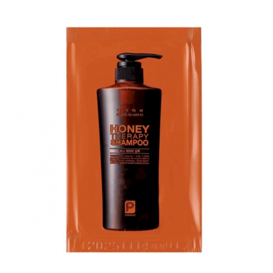 Daeng Gi Meo Ri Honey Intensive Therapy Shampoo SAMPLE 7ml is a travel‑size intensive therapeutic shampoo designed to deeply cleanse, nourish and restore dry, brittle and damaged hair, formulated with honey, propolis, ginseng extract, sesame seed, burdock root extracts and plant‑derived oils that gently remove impurities and excess sebum while providing deep hydration, strengthening hair follicles, improving hair texture, reducing breakage and helping to restore softness, elasticity and healthy shine, as well as leaving the scalp feeling refreshed and comfortable; the sample size is perfect for trying the product or for travel.