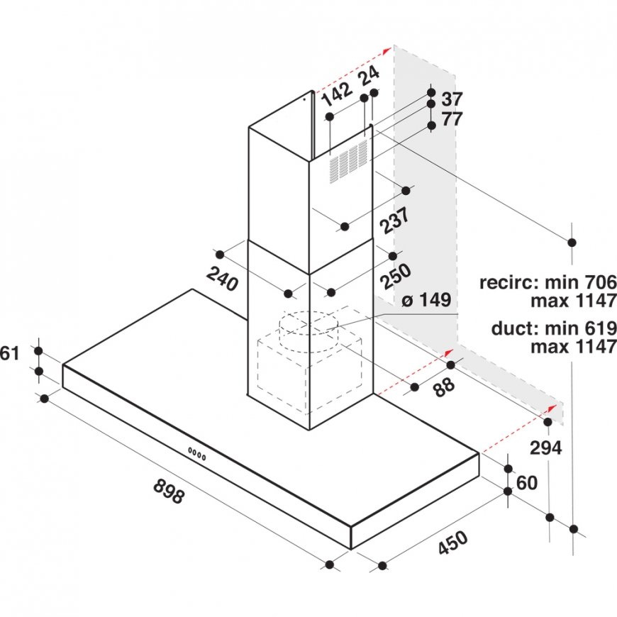 | Minimaalne kaugus gaasipliidist | 65 cm |