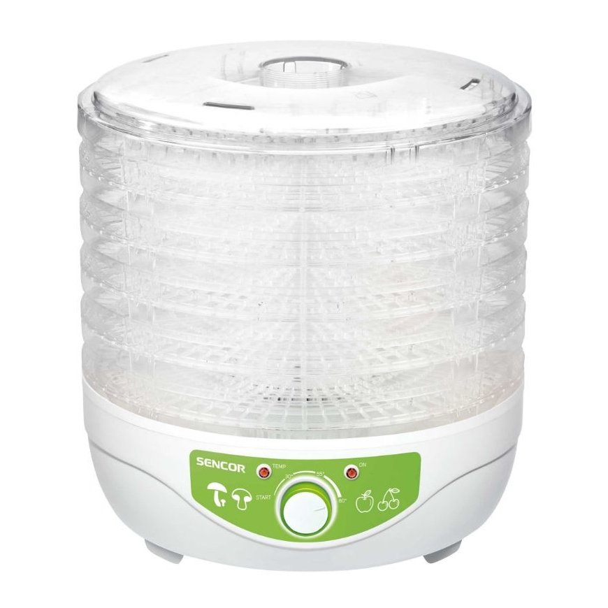 Toiduvalmistamiseks sobiv toidukuivati, näiteks: kuivatatud puuviljad (ristõied, ploomid, aprikoosid, banaanid jne) rosinad - kuivatatud köögiviljad suppide jaoks - kuivatatud tomatid - kuivatatud maitsetaimed -taimeteed (piparmünt, pärnaõied, kummel jne) - kuivatatud seened suppide ja roogade jaoks - kaunistamiseks kuivatatud apelsine - kuivatatud kõrvitsaseemned - kuivatatud kroonlehed lõhnavate segude jaoks - suitsutatud liha - kuivatatud kala Temperatuuri reguleerimine 35-80 ° C 5 kuivatusekraani standardvarustuses Säästke ruumi, kui töötate vähemate võrkudega (võib -olla ühe võrguga) Kuivatussõela läbimõõt: 23 cm Kasutatav põranda kõrgus: 1,3 cm Sisseehitatud ventilaator aitab kõigil põrandatel ühtlaselt kuivada Kuivatusekraani võrekujundus hoiab ära hallituse tekkimise ja optimeerib õhuvoolu Läbipaistev kaas ja sõelad võimaldavad viivitamatult visuaalselt kontrollida kuivatamistingimusi Kuivatusekraane ja kaant saab pesta nõudepesumasinas Termokaitse ülekuumenemise vastu Energiatarve: 250 W Toitekaabli pikkus: 0,9 m Mõõtmed (laius × sügavus × kõrgus): 230 × 230 × 190/230 mm Kaal: 1,3 kg Pinge ja sagedus: 220-240 V, 50 Hz