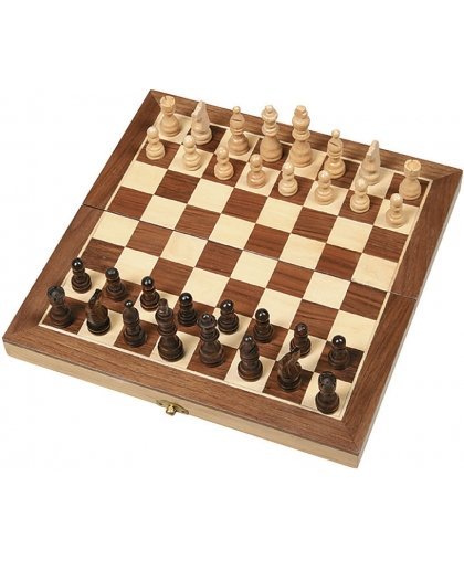 Chess is a popular game classic that requires skills and good strategy to win. The wooden chessboard folds together and the pieces are convenient to store inside the game board.