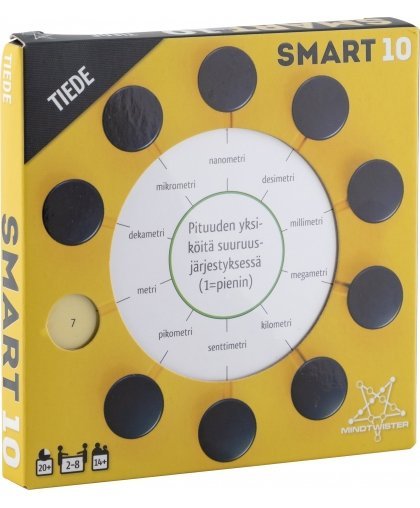 Lisää kysymyksiä SMART10-tietopeliin: 50 kaksipuolista kysymyskorttia, yhteensä 100 uutta kysymystä ja 1000 vastausta! Tiede-teeman alle on koottu kysymyksiä mm. keksinnöistä, alkuaineista, tieteenaloista, tieteentekijöistä, avaruusmatkailusta, yliopistoista ja tutkimusmatkoista. Vaihda Smartboxissa olevat kysymykset kahteen teemapakkaan tai sekoita Tiede-teemapakka puolikkaaseen alkuperäistä kysymyspakkaa. Pelaamiseen tarvitaan kysymyskorttien lisäksi SMART10- tai SMART10 JR -pelin Smartbox.