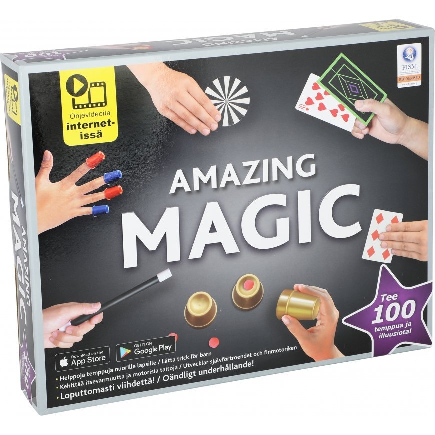 Tällä 100 temppua sisältävällä Taikasetillä voit oppia hämmästyttäviä taikatemppuja jopa minuuteissa. Esitä häikäiseviä korttitemppuja, saa kolikot lisääntymään tai jopa ilmestymään tyhjästä. Esineet voivat kadota käsissäsi ja ilmestyä taas uudelleen ja jopa muuttua. Ajattomia temppuja, kuten kuppeja ja palloja. Ja paljon, paljon muuta! Sisältää ohjeet suomeksi ja ruotsiksi sataan taikatemppuun ja illuusioon.