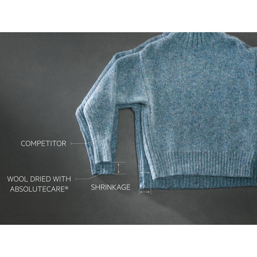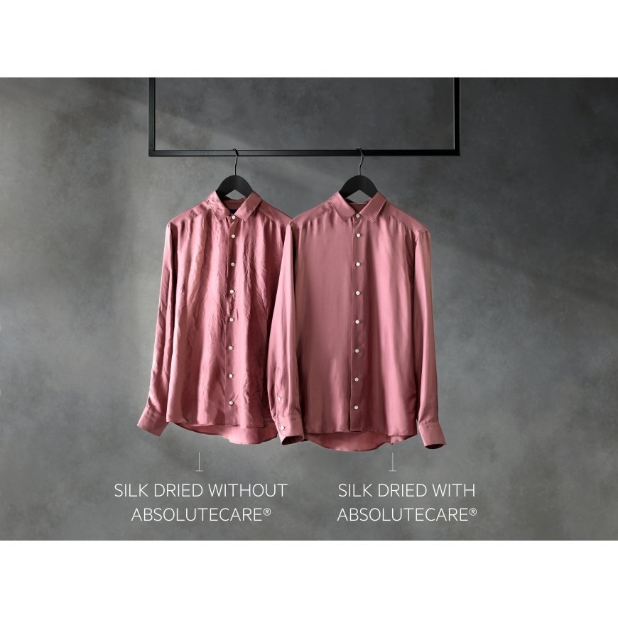 AbsoluteCare® lämpöpumpputekniikalla, tasainen ja tarkka lämpötila takaa, että villa ei kutistu ja että silkki ei menetä muotoaan, sekä palauttaa ulkoiluvaatteiden vedenkestävyyden. Woolmark Blue -sertifioitu.
