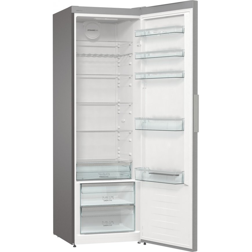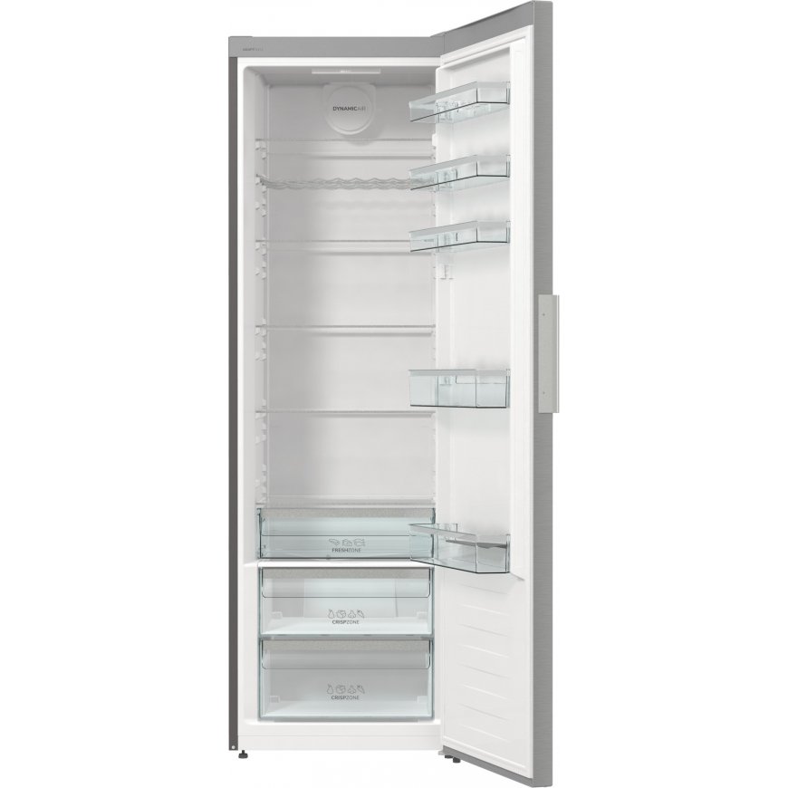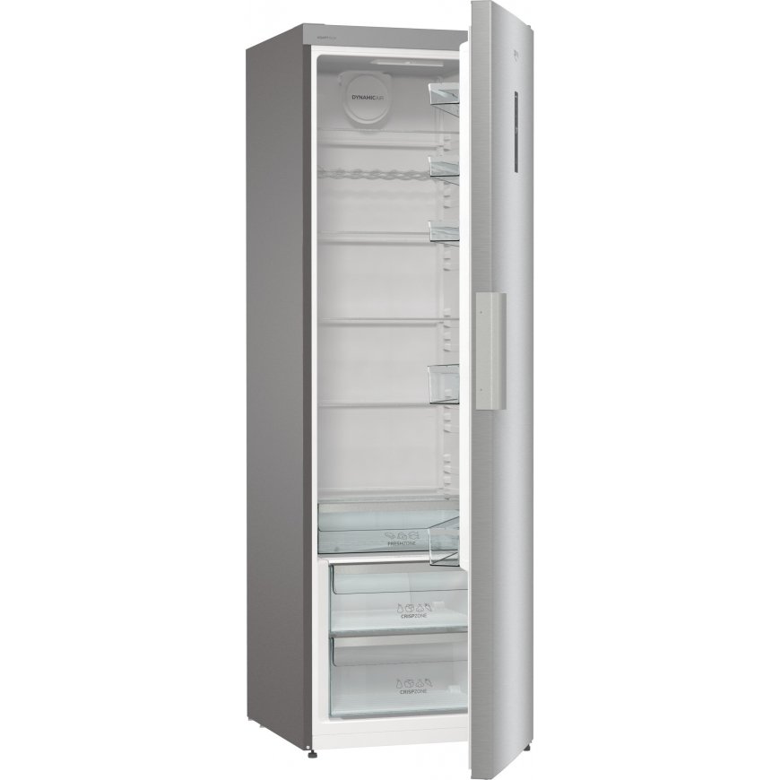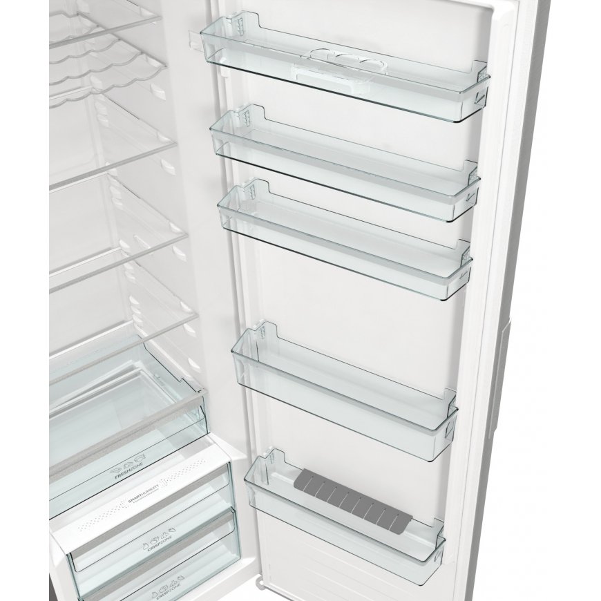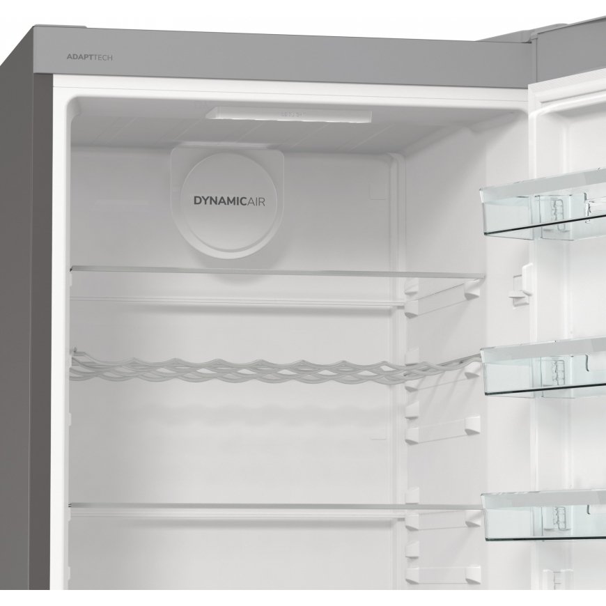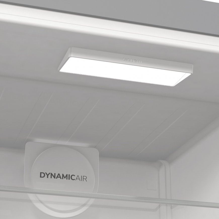 Jääkaapissa on tehokas ja energiaystävällinen LED-sisävalo, lasihyllyt ja tilavat muotoillut ovihyllyt. Ilmankierto tapahtuu tuulettimen avulla, jolloin lämpötila on tasainen kaikilla hyllyillä. Tukeva teräskahva on sekä kestävä että tyylikäs. Ovessa olevan tyylikkään näytön kautta ohjaat jääkaapin toimintoja ja voit säätää säilytyslämpötilaa.