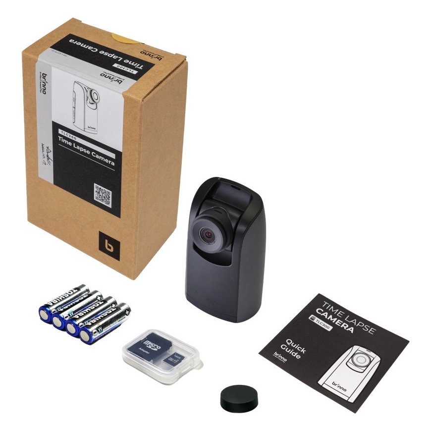 Brinno TLC300:n mukana toimitetaan paristot, muistikortti sekä linssisuojus. Kamera on helppo asentaa muutamassa minuutissa.