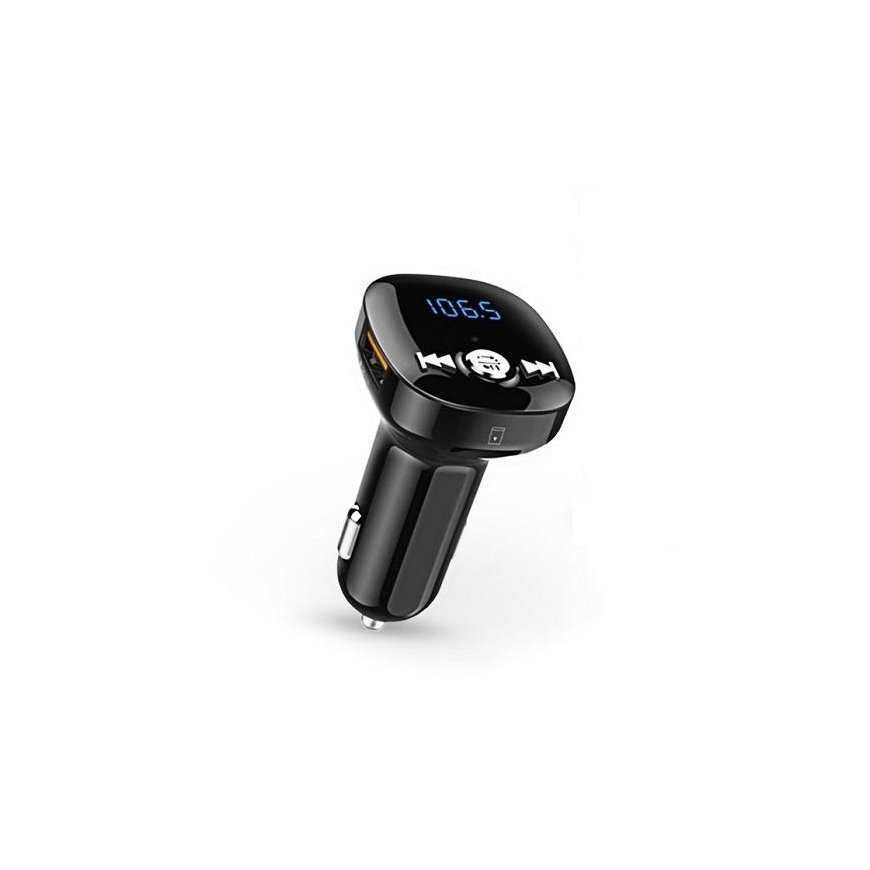 FM transmitter with fast charging function. This in-car wireless FM transmitter is designed to transmit MP3/WMA audio files from a USB flash, MP3 player or smart device to the car radio using FM radio waves. Features:FM music transmission to the car radio.Dual USB charger. Two devices can be charged at the same time.Charging via USB socket: 5V/1A.Fast charging with USB Qualcomm 3.0 socket 5V/3A.Hands-free functions: answer, call hold, reject, redial.Supports 2 mobile phone connections simultaneously.Car battery voltage detection.Automatic power off memory function.Echo cancellation and noise reduction (CVC) technology.LED display. Microphone.Supports voice navigation. Available sources for music:USB memory flash.Micro SD card (up to 32GB).U-disk storage capacity (up to 32GB).Bluetooth version: 5.0+EDR. Technical data:Rated operating voltage: 12-24V.Operating voltage: min 8V - max 32V.USB1 output: 5V / 1A.USB2 output: Qualcomm® Quick Charge3.0, maximum output: 5V / 3A.Noise cancellation technology (DSP and CVC).Signal-to-noise ratio SNR: > 60 dB.Accuracy of the displayed battery voltage: +/-1V tolerance.FM frequency range: 87.5-108.0 MHz.Effective microphone range: 0.5-2 m.Bluetooth sound processing: A2PD support (Enhanced Audio Distribution Profile).Supports formats: MP3/WMA/WAV/FLAC/APE.Bluetooth transmission distance: 2m. Note: For better sound quality, please select a station frequency that is as far away as possible from the frequency of another station. Warranty: 24 months.