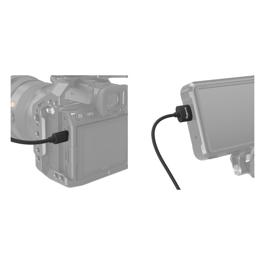 SmallRig 3040 on erittäin laadukas, lyhyt HDMI-kaapeli kameran ja videotallentimen tai näytön väliin. Siinä on toisessa päässä Micro HDMI (D) -liitin ja toisessa päässä täysikokoinen A-liitin. Se on erittäin ohut ja taipuisa, joka tekee siitä oivan valinnan juuri tähän käyttöön.