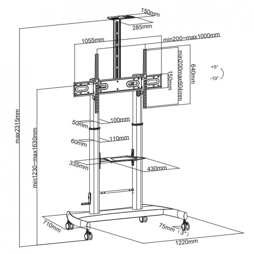 | Malli | Siirrettävä litteän näytön teline |