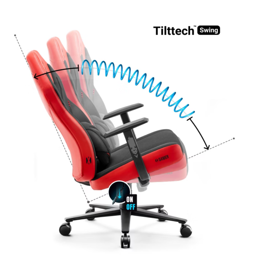 Lisäksi Tilttech™ Swing -mekanismi mahdollistaa helpon heilumisen tuolissa - voit säätää selkänojan ja istuimen kallistusvoimaa painosi mukaan, ja itse tuoli voi kallistua jopa 115°!