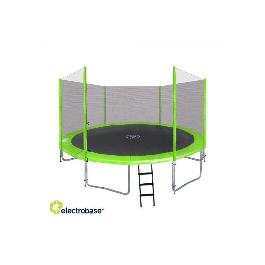 | Trampoliini | - puutarha trampoliini, jonka halkaisija on 366 cm, - trampoliinimatto, joka on venytetty 72 galvanoidulla jousella, 19 cm pitkä, suojareunalla, - koko trampoliinin runko on valmistettu galvanoidusta karkaistusta teräksestä, - 6 U-muotoista jalkaa, jotka lisäävät rakenteen vakautta merkittävästi, - verkko on venytetty 6 pylvään päälle, jotka ulottuvat maahan, varmistaen rakenteen paremman vakauden ja turvallisuuden, - pylvään putket, joille verkko on venytetty, on peitetty EPE-suojavaahdolla, jonka poikkileikkaus on Ø48 x 10 mm, - mustat tikkaat, jauhemaalattu, - 12 lukkoa, joissa on kansi trampoliinin verkon pylväiden kiinnittämiseksi, - työkalusarja trampoliinin kokoamiseen, |