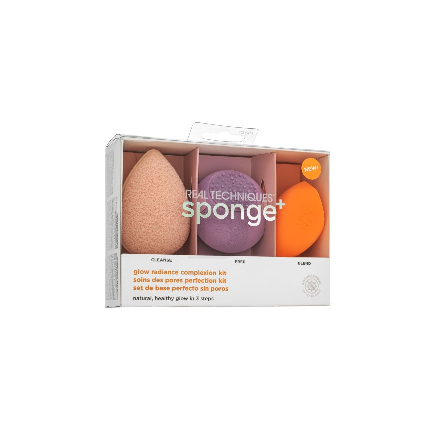 Real Techniques Sponge+ Glow Radiance Complexion Kit is a set of three makeup sponges designed for even application of foundation, concealer, and highlighter. The soft, resilient material allows precise blending, natural coverage, and a radiant finish. The sponges are suitable for both professional and home use.