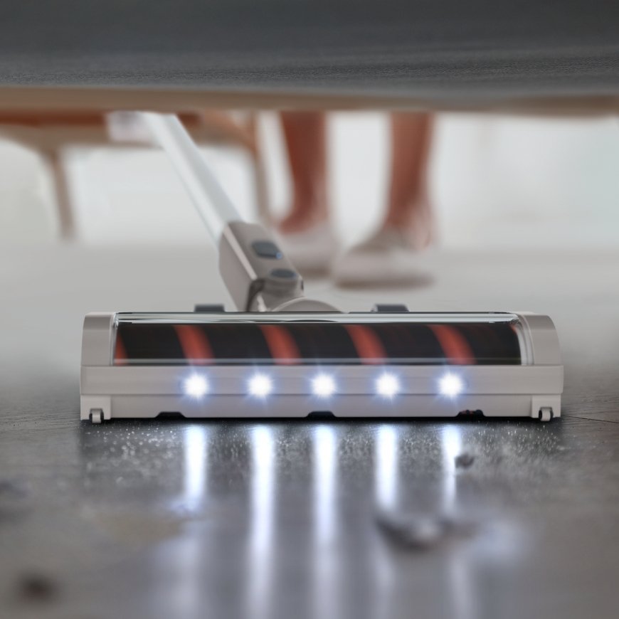 LED-suuttimen ansiosta siivoat tehokkaasti jokaisella vedolla ja keräät jopa 99 %(7) pölystä ja liasta suurinta imutehoa käytettäessä. Suuttimen tarkasti suunnattu valo valaisee pienet pölyhiukkaset, joten näet kaikki puhdistusta kaipaavat kohdat. Suutin on suunniteltu keräämään likahiukkaset erittäin läheltä seiniä ja reunoja. Saat siivottua jokaisen pölyhiukkasen.