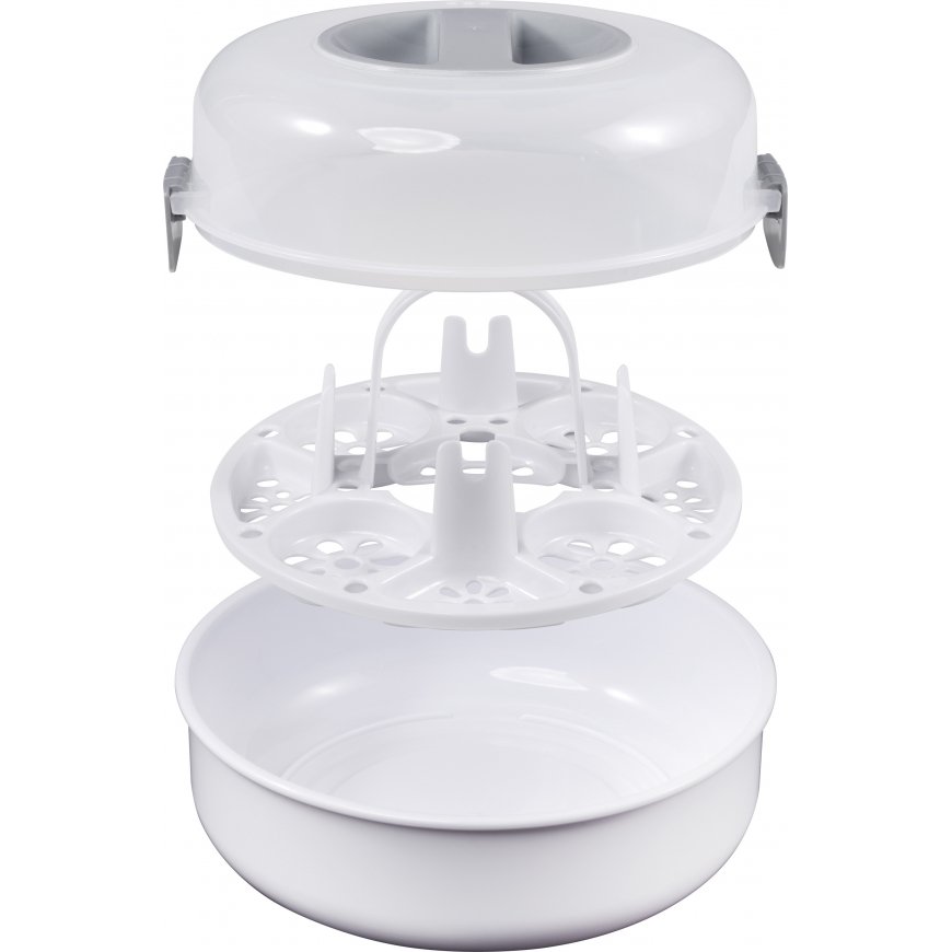 Milla & Måns Pure Steam -mikrohöyrysterilointilaite steriloi tuttipullot mikroaaltouunissa vain kolmessa minuutissa. Mikrohöyrysterilointilaite on sekä nopea että myös erittäin tehokas, sillä se hävittää 99,9 % bakteereista. Käyttöaika määräytyy mikroa