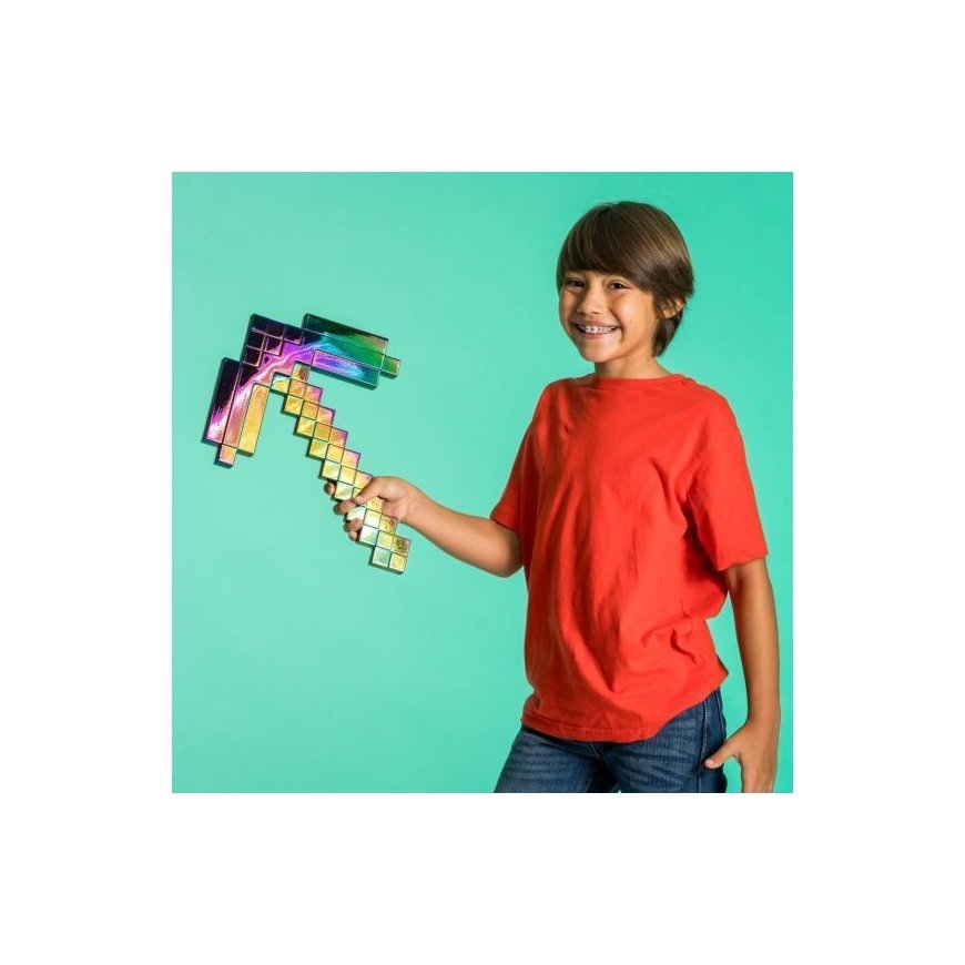 Upea kiiltävä Minecraft juhlavuoden Hakku on täydellinen lisä jokaisen Minecraft-fanin asearsenaaliin! Tämä muovista valmistettu hakku on 41 cm pitkä ja siinä on pelistä tuttuja yksityiskohtia. Tartu Minecraft Hakkuun ja herätä pelistä tutut kohtaukset