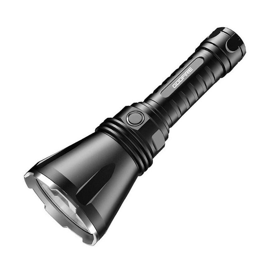 The Superfire TF01 flashlight is a high-quality device designed for users who need reliable and efficient lighting in a variety of conditions. It offers an impressive range of up to 1,000 meters in Turbo mode and various brightness levels to suit the user's needs. With a capacious 4800 mAh battery, the Superfire TF01 provides long-lasting operation, reaching up to 52 hours in Low mode.