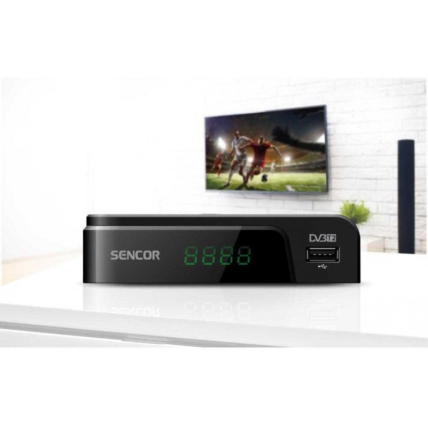 DVB-T RECEIVERSENCOR SDB 524TSignaalin vastaanotto: DVB-T2 HEVC/H.265 (1080p nopeudella 60 FPS)DVB-T - MPEG-2/MPEG-4 (H.264)PAL/SECAM EN/DK/I/LHDR) (Video-tulot10-tulot0 RFMI-tulot0 p) CEC-tuki SCART-liitännälläUSB-portti Tuetut USB-muodot: Video: AVI, TS, TRP, MP4, MKV, MOVAaudio: MP3 Kuvat: jpg, jpeg: USB - tallennus, Timeshift-toiminto, multimedian toistoSeitsemän päivän EPG (elektroninen ohjelmaopas) (Tele-tekstiLuettelo TV- ja TV-kanavalukituksen asetuksista8 tallenteet), automaattinen virrankatkaisuajastinTuki sekä 16:9- että 4:3-formaateille Virtalähde: DC IN, 5V/2APVirrankulutus: max. 10 W Valmiustilan virrankulutus: max. 0,5 W Mitat: 120 x 30 x 86 mm