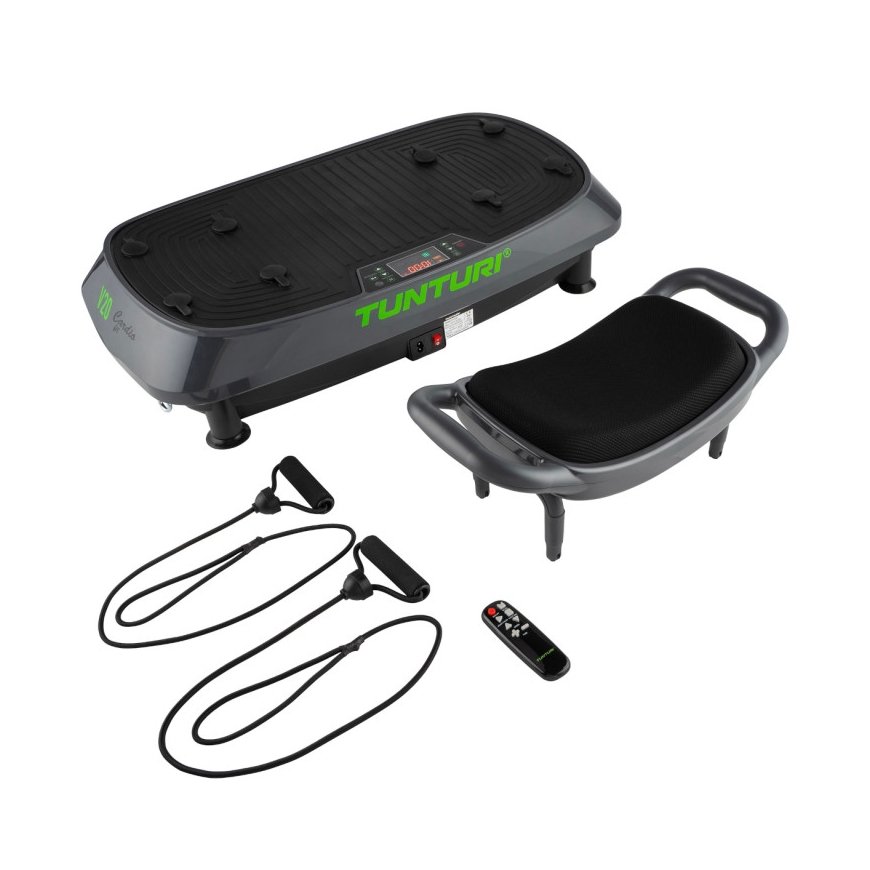 Tärinälevyn mukana toimitetaan kaksi harjoituskumia kahvoilla, tanko ja kahvat käsivarsien ojentamista varten.