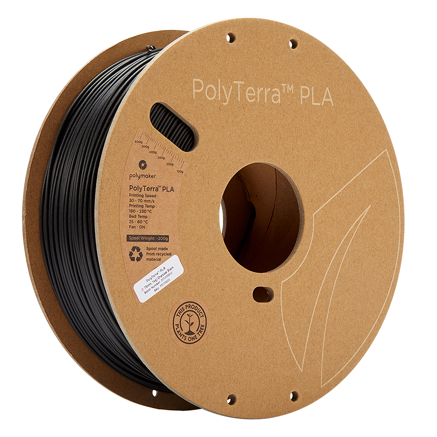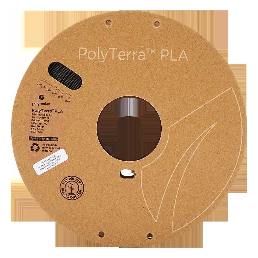 PolyTerra PLA -filamentti on täysin biohajoava ja ympäristöystävällinen materiaali, joka vetoaa varmasti 3D-tulostuksen harrastajiin. Filamentissa yhdistyvät orgaaniset materiaalit PLA:n kanssa samalla, kun se vähentää sisältämän muovin määrää. Tuote on kääritty 100 % kierrätetylle pahvirullalle. PolyTerra PLA on kestävä, helposti tulostettava filamentti, josta valmistetuissa malleissa on mattapintainen pinta. Yksi kela sisältää 1 kg hiilimustafilamenttia, sen halkaisija on 1,75 mm.