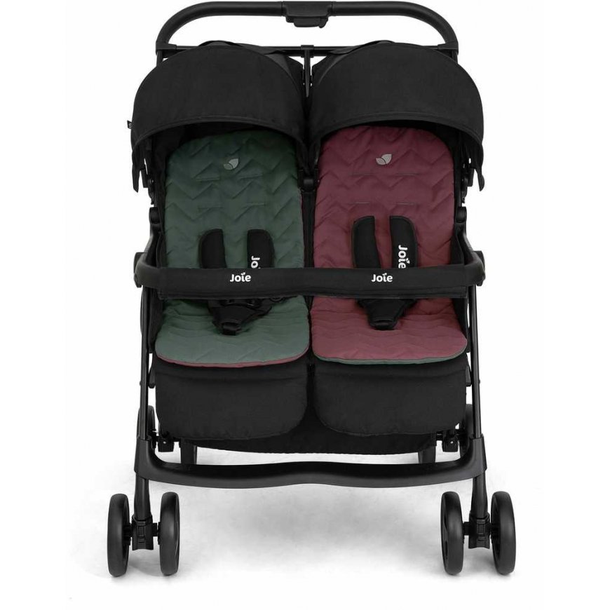 SäädettäväJoie Aire Twinissä on kaksi yksilöllisesti säädettävää selkänojaa, mukaan lukien makuuasento. Lisäksi jalkatuen kaksivaiheinen säätö varmistaa, että lapsi on mukavassa asennossa myös nukkuessaan. Hupuissa on UPF50+-suodatin, joka suojaa haitallisilta auringonsäteiltä, ja ne on varustettu katseluikkunoilla, jotta voit pitää pikkuisiasi silmällä.