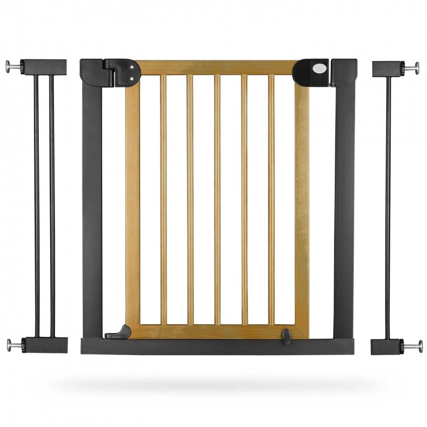 Nukidon turvaportti, malli 718200. Onko Nukidon turvaportti asennettu poraamatta reikiä? Et vahingoita seiniä tai ovenkarmeja. Maali on valmistettu vaalean puun ja mustan teräksen yhdistelmästä, joten se sopii yhteen puisten sisustuselementtien kanssa. Säädettävä leveys mahdollistaa asennuksen oviaukkoihin ja käytäviin 76–104 cm:n välillä. Varmista lapsesi turvallisuus. Lapsi oppii uusia asioita joka päivä. Jotta he voivat tutkia maailmaa turvallisissa olosuhteissa, kannattaa ostaa suojaeste. Portti estää lasta kiipeämästä tai putoamasta portaita alas. Tämä estää pääsyn suojaamattomiin tiloihin. Mukautettava tarpeisiisi Laajennettavuuden ja kiinnitysjärjestelmän ansiosta portti voidaan mukauttaa 76 cm - 104 cm leveisiin käytäviin. Sinun ei tarvitse etsiä mittatilaustyönä tehtyjä kaiteita. Käytä vain mukana tulevia tarvikkeita. Työkaluja ei tarvita! Olemme sisällyttäneet pakkaukseen 4 kiinnityselementtiä, joilla portti on helppo asentaa ovenkarmiin tai käytävään. Ei tarvitse huolehtia rungon tai seinän vaurioitumisesta. Kun kaiteita ei enää tarvita, ne voidaan helposti purkaa. Käytännöllinen ja esteettinen ratkaisu Nukido-turvaporttien edut: kiristettävä sertifikaatti: EN1930:2011 EN71 yhdellä kädellä avaus helppo sulkeminen säädettävä leveys (76-104 cm) kaksipuolinen avautuminen voidaan estää avaaminen vain yhteen suuntaan oven voi lukita 90 asteen asentoon 4 kaksoiskiinnityspistettä sulkeutuminen puun ja teräksen yhdistelmä Tekniset tiedot: merkki: Nukido-portti väri: puinen, musta materiaali metalli, puinen portti mitat: 76-104 cm x 77 cm sarja sisältää portin, 2 jatkopalaa, 4 leveyden säädintä, paino: 6 kg sertifikaatit: EN 1930:2011 Onko portti hieman auki laatikosta? Tämä on tarkoituksellinen käsittely, joka parantaa sen vakautta asennuksen jälkeen, kuten ovenkarmissa. Sitten riittää, että portti säädetään valkoisilla muttereilla. Portti laskeutuu ja toimii oikein.
