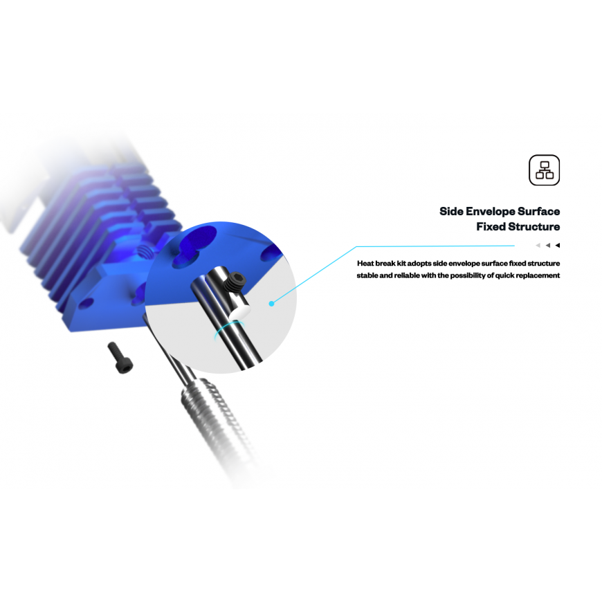 Maksut 5x27.80€ Vario- ja kovametallimateriaali, joka kestää korkeita lämpötiloja ja on kulutuskestävä. Varustettu kuparilla päällystetyllä Reprap M6 0,4 mm suuttimella. HF-versiossa käytetään pidennettyä suuttimen muotoilua, joka sopii paremmin suurivirtaiseen ja nopeaan tulostukseen. Käytetään yhtenäistä hitsattua suutinta, joka takaa suuremman kestävyyden ja paremman tiiviyden. Lämpökatkaisinsarja on varustettu sivupinnan tyyppisellä kiinteällä rakenteella: vakaa ja luotettava, mahdollisuus vaihtaa nopeasti. Pidempi suutin ja lämpöblokka: suurempi sulamisaukko, sopii suurivirtaiseen ja nopeaan tulostukseen. 0,25 mm seinämän paksuinen lämpökatkaisu: erinomainen lämpöeristys, ei estä muovia. Vario- ja kovametallimateriaali, joka kestää korkeita lämpötiloja ja on kulutuskestävä. Messinkisuuttimet / kovametallisuuttimet / kuparilla päällystetyt suutimet tukevat korkeita lämpötiloja, kulutuskestäviä.