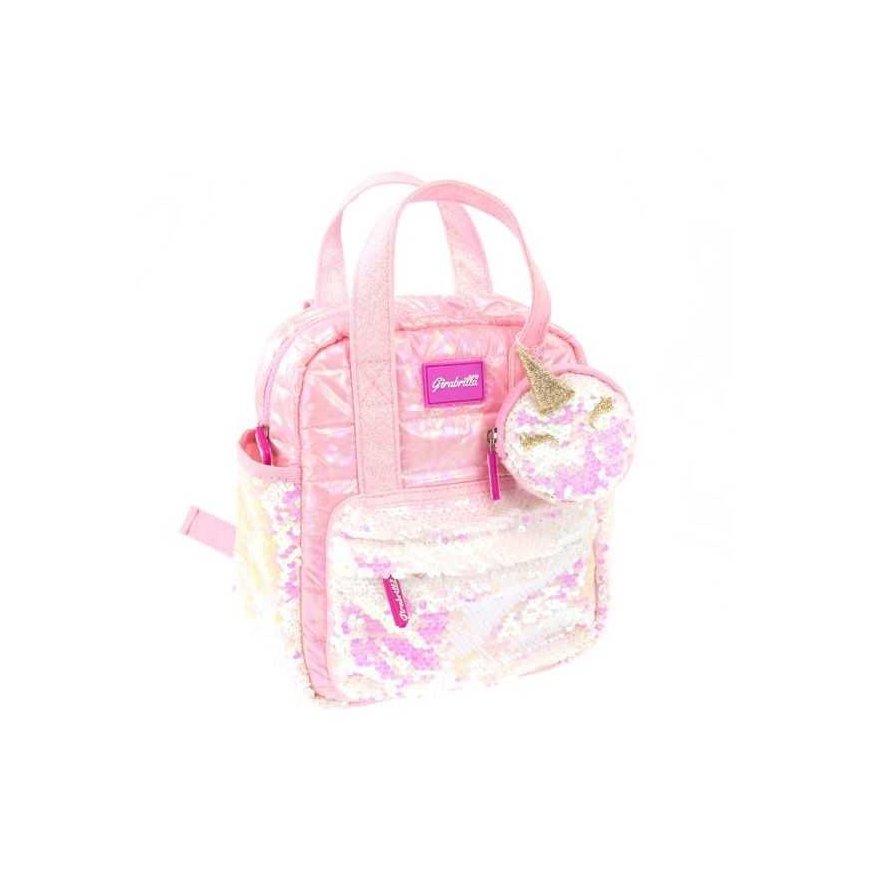 Mini reppu, jossa on lompakko, vaaleanpunainen. Reppu on valmistettu pehmeästä, sateenkaaren värisestä kankaasta, ja siinä on kimalteilla koristellut taskut, joissa on kiiltävät värit. Repussa on myös pieni yksisarvisen muotoinen lompakko. Lompakossa on myös koukku, jonka avulla voit kiinnittää sen mihin tahansa haluat. Repussa on 3 ulkoista taskua suosikkiesineillesi. Etutasku on vetoketjulla suljettava, ja kaksi sivutaskua ovat avoimia. Pääosasto suljetaan vetoketjulla, ja siihen mahtuu erilaisia esineitä, mukaan lukien päiväkirjat, muistikirjat, kynät, lompakko, asusteet ja paljon muuta. Ylhäällä on kaksi käytännöllistä kahvaa.