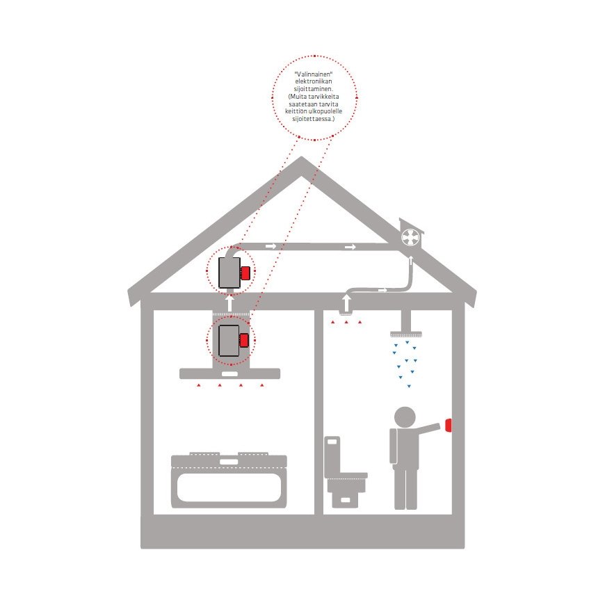 Thermex ilmanvaihdon ohjaus/tehostus -moduuli koostuu kolmesta eri komponentista: sähkötoimisesta tehostusventtiilistä, ohjainpiirikortista sekä langattomasti toimivasta katkaisijasta (märkätilatehostus). Tämä moduuli on yhteensopiva kaikkien Thermexin