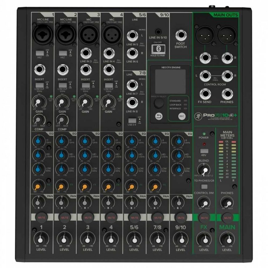 Hammasharja Mackie ProFX10v3+ - Analoginen mikseri USB:llä ja Bluetoothilla