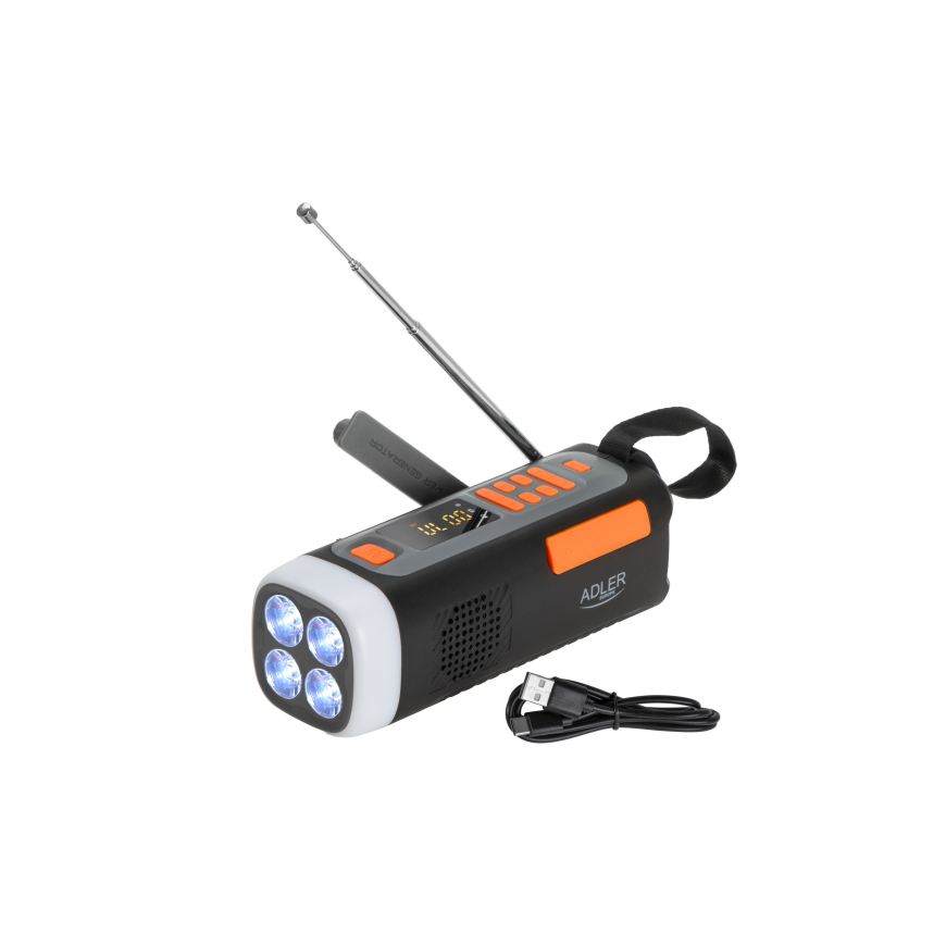 The Adler AD 1920 is a reliable multi-functional device designed for crisis situations, travel, camping, and everyday use. It combines FM/AM/SW radio, flashlight, camping lamp, powerbank, and Bluetooth speaker. Perfect for home, car, camping trips, and as part of an emergency survival kit.