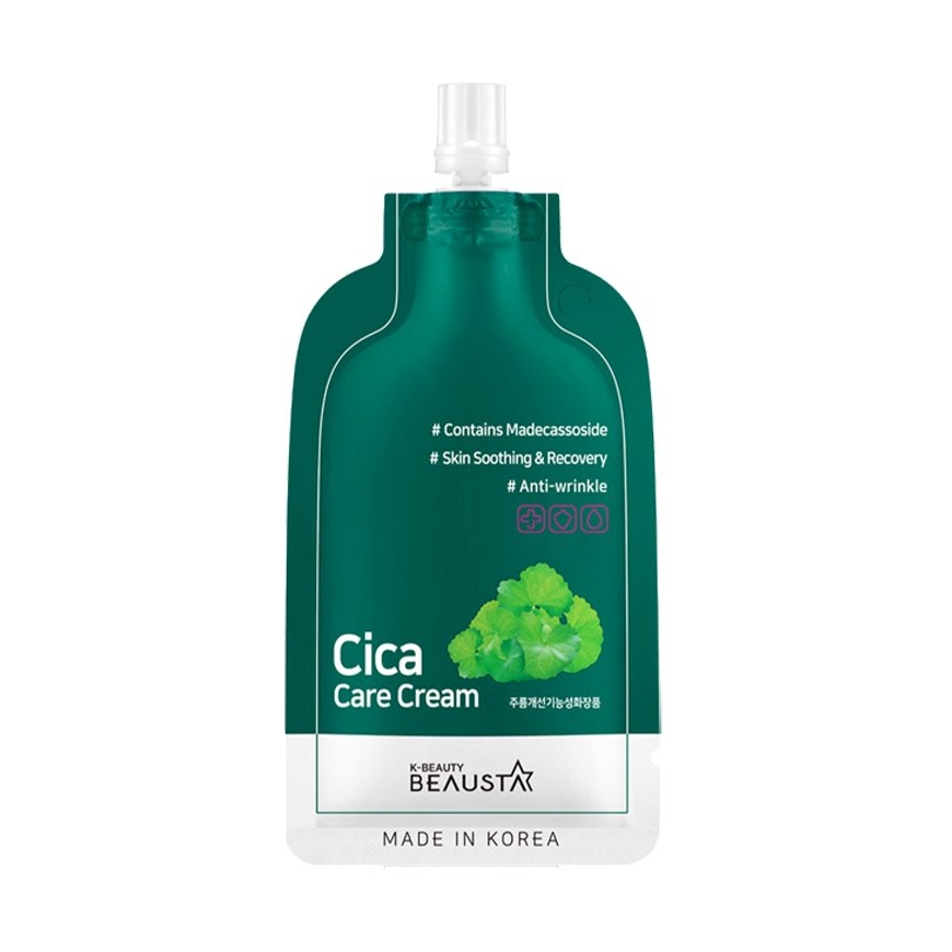 Beausta Cica Care Cream is a revitalizing cream with CICA complex that soothes sensitive skin and strengthens its natural defenses. It heals and moisturizes damaged skin, leaving it soft and healthy. The cream absorbs quickly and leaves no stickiness, providing a fresh finish. The compact packaging with a convenient spout makes it easy to dispense the required amount of product, makes the product easy to carry around and ensures hygienic use.