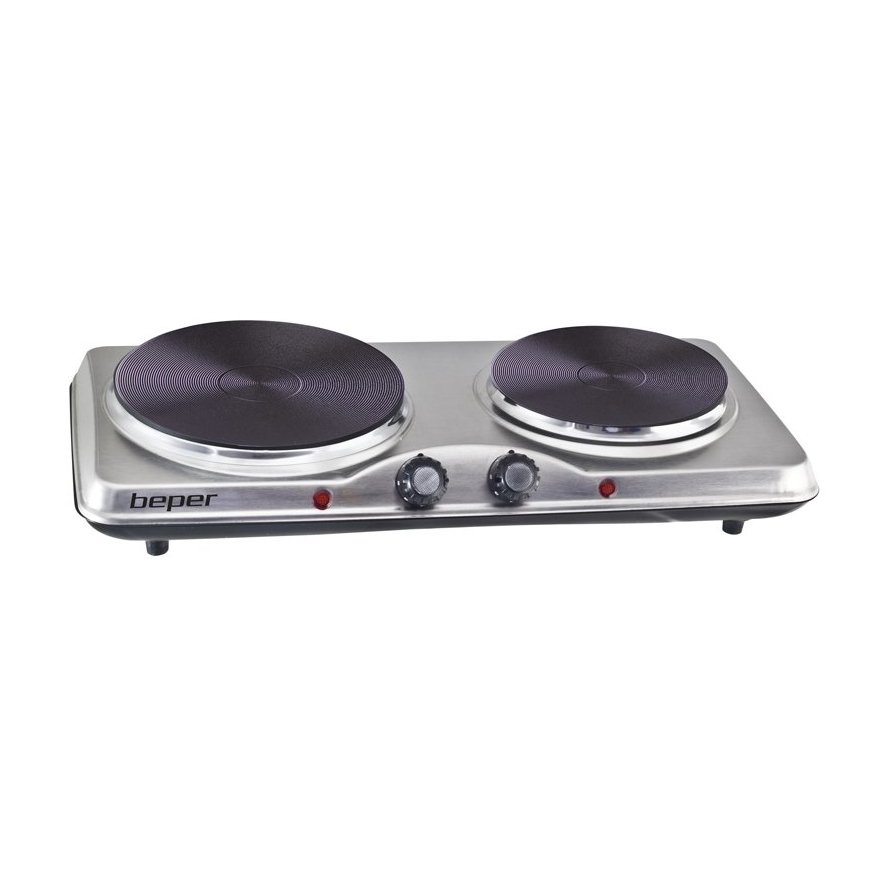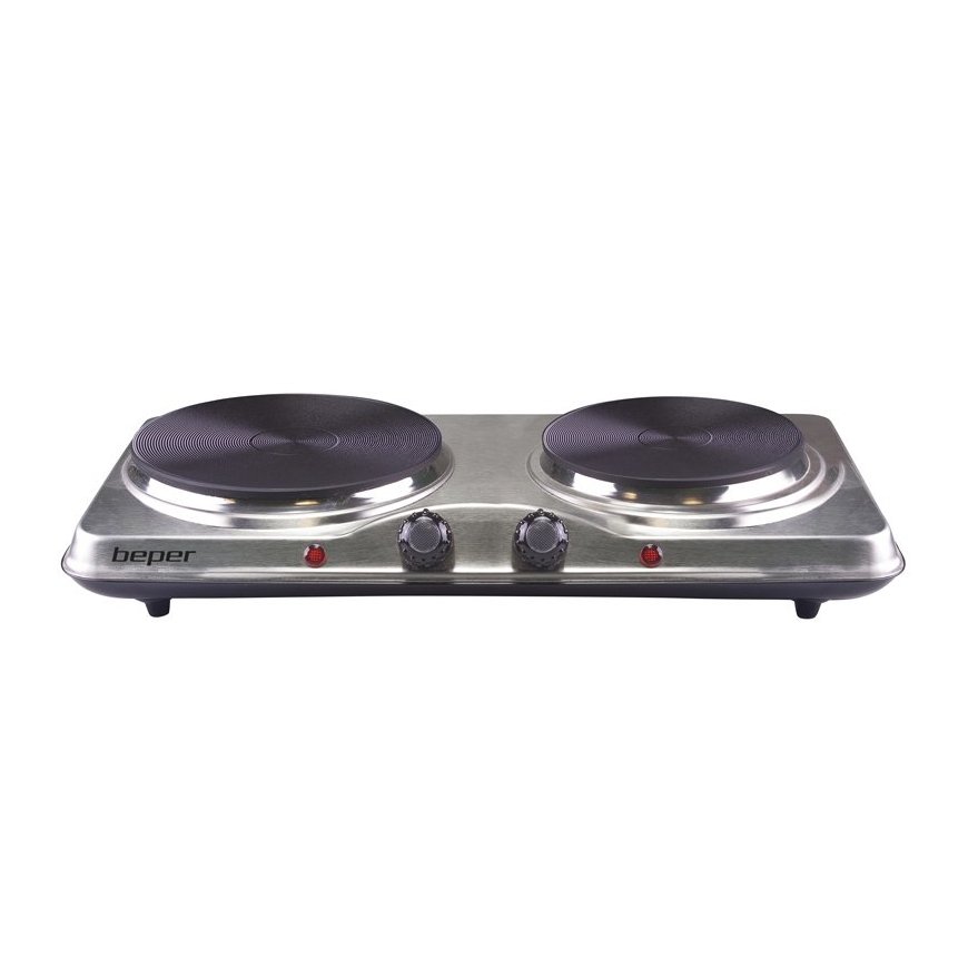 Beper 90.825. Lautasten lukumäärä: 2 kpl, Tuotteen väri: Ruostumaton teräs, Materiaali: Ruostumaton teräs. Virrankulutus: 1500 W, AC-syöttöjännite: 220-240 V, AC-syöttötaajuus: 50 - 60 Hz. Tuotteen leveys: 470 mm, Tuotteen syvyys: 250 mm, Tuotteen korkeus: 85 mm. Pakkauksen leveys: 490 mm, Pakkauksen syvyys: 285 mm, Pakkauksen korkeus: 90 mm