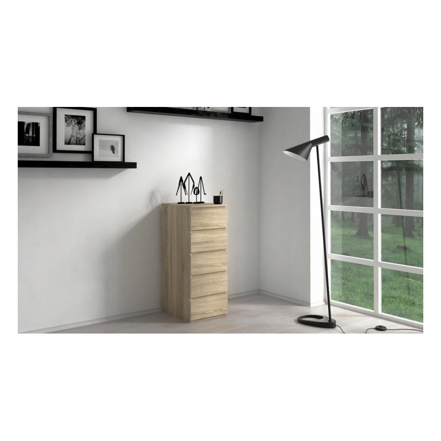 Topeshop W5 SONOMA. Tuotteen väri: Tammi, Vetolaatikoita: 5 laatikko(a), Kehyksen materiaali: Lastulevy. Tuotteen leveys: 400 mm, Tuotteen syvyys: 450 mm, Tuotteen korkeus: 1110 mm