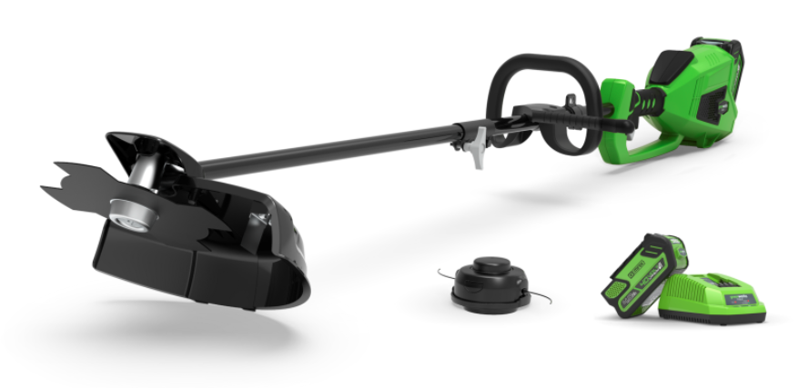 This unit is powerful and efficient, with a 40V brushless motor, so you can take care of all kinds of gardening tasks without having to worry about an electrical outlet anywhere nearby. The integrated and adjustable D-Grip handle allows the user to choose the working position, making the brushcutter easy to use. Thanks to the extremely light brushless motor, it is easy to transport and conveniently fit in the space provided for the device. This Greenworks string trimmer and brush cutter in one 40V has a 25cm wide brush cutter blade, perfect for cutting thicker grass or bushes, and a belt that reduces the weight on your hands. A powerful, durable, quiet and reliable garden tool will allow you to enjoy work every moment. The set includes everything you need for comfortable work.