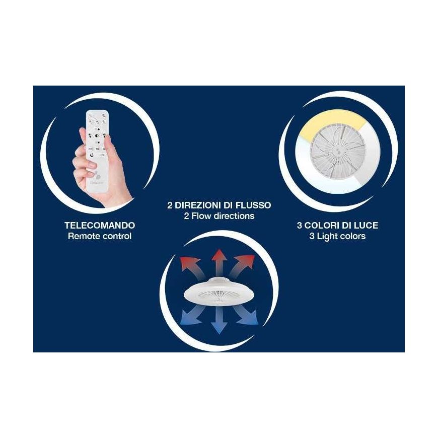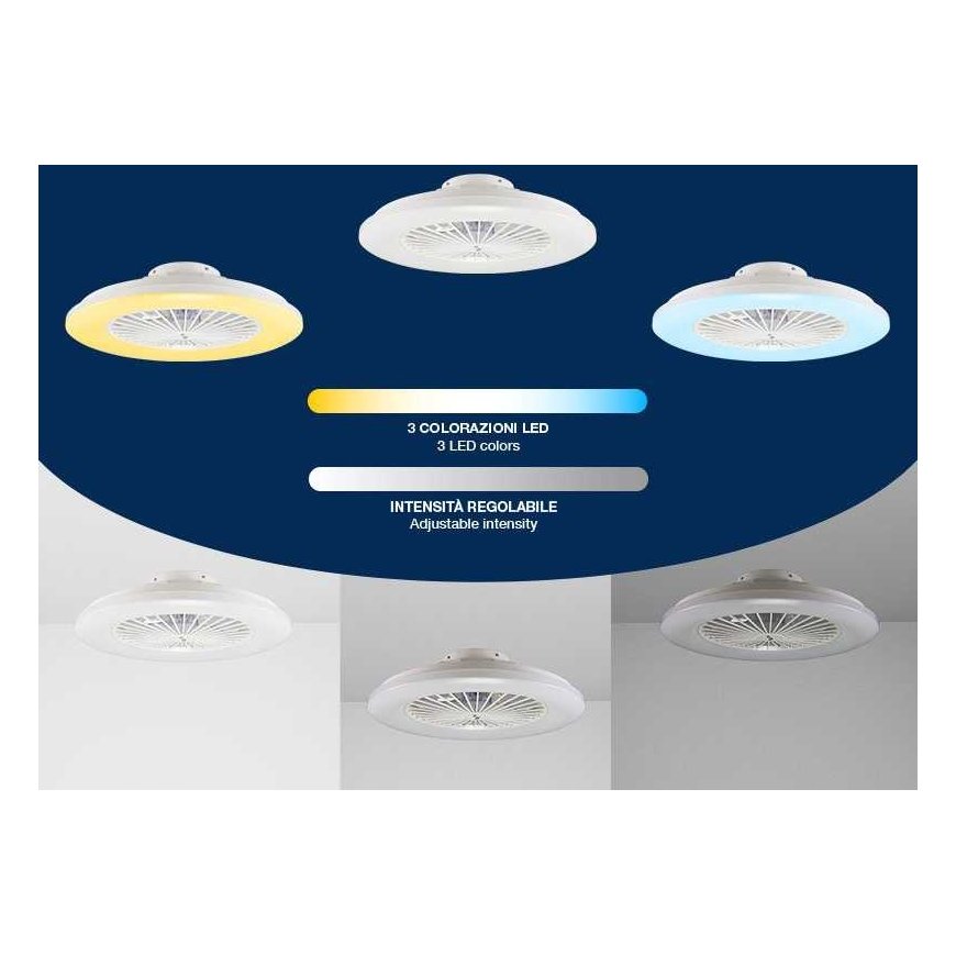 Pay 5x16.60€Modern design ceiling fan with built-in dimmable LED lighting adjustable in 3 colors (warm light, cold light and neutral light).