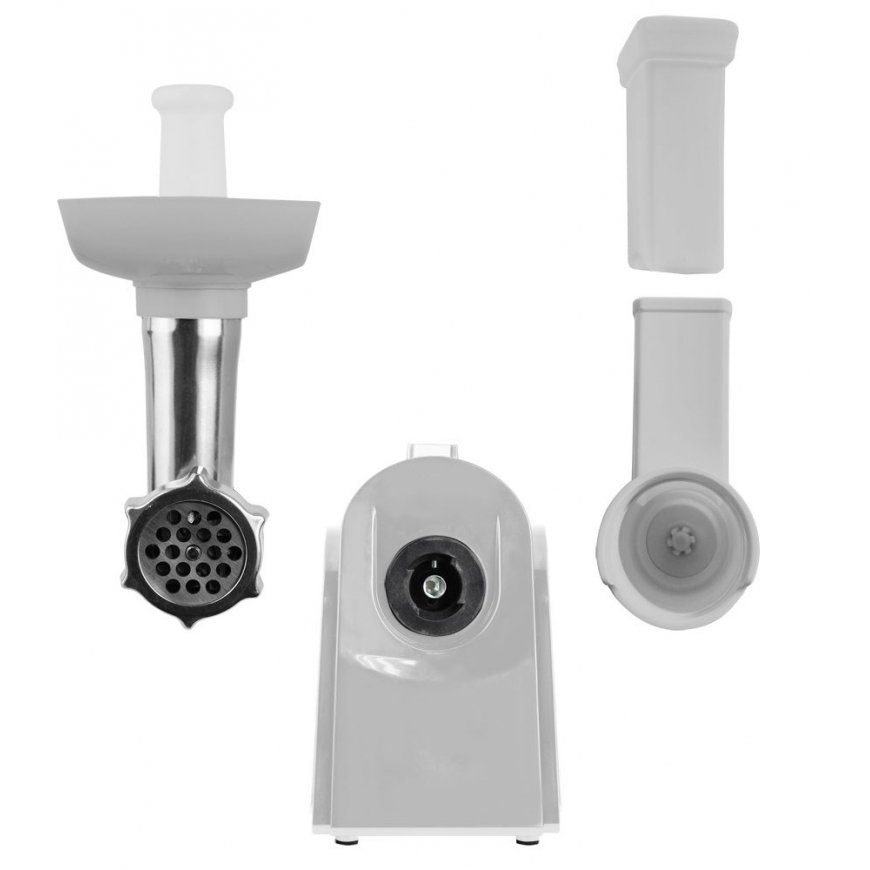 The Esperanza RISSOLE meat grinder with slicer is a modern and functional device that will be very useful in every home kitchen. The device in the "grinder" function will very easily grind not only meat, but also other food products, and additional attachments will allow you to make sausages or "kebbe". During the "shredder" function, Esperanza RISOLLE is perfect for chopping fruit, vegetables, hard cheese, chocolate, nuts or preparing crumbles. Anti-slip rubber feet guarantee stable and safe operation of the device. maximum power: 2200 W stainless steel knife with long service life metal worm drive 3 grinding disc strainers with different hole diameters: 3.0mm 5.0mm 7.0mm forward and reverse movement function nozzle for making sausages nozzle for kneading kebbe balls 3 different shredding drums non-slip rubber inserts ensuring stable operation of the device net weight: 2.49 kg product dimensions: 27.5 x 13.5 x 35.0 [cm] power cord length: approx. 85 cm power supply: 230V, 50Hz