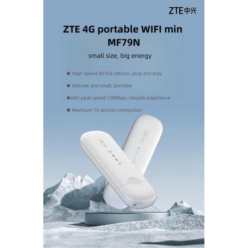 The ZTE MF79N router functions as an access point and router, supporting dual-band Wi-Fi and offering a maximum WLAN data transfer speed of up to 1501 Mbit/s. It features Gigabit Ethernet, VPN throughput, and is compatible with various operating systems, including Windows and Mac.