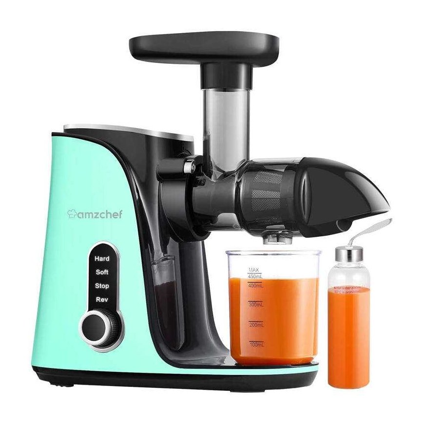 Pay 5x21.80€Meet the AMZCHEF GM3001-GN slow-rotating juicer, a device that allows you to extract the maximum amount of juice and retain all the nutritional value in each drink. Thanks to the innovative cold-pressing technology, you will get a drier pulp, which means that your juice will contain even more vitamins and minerals. The AMZCHEF juicer is a great way to give yourself and your loved ones a dose of health every day.
