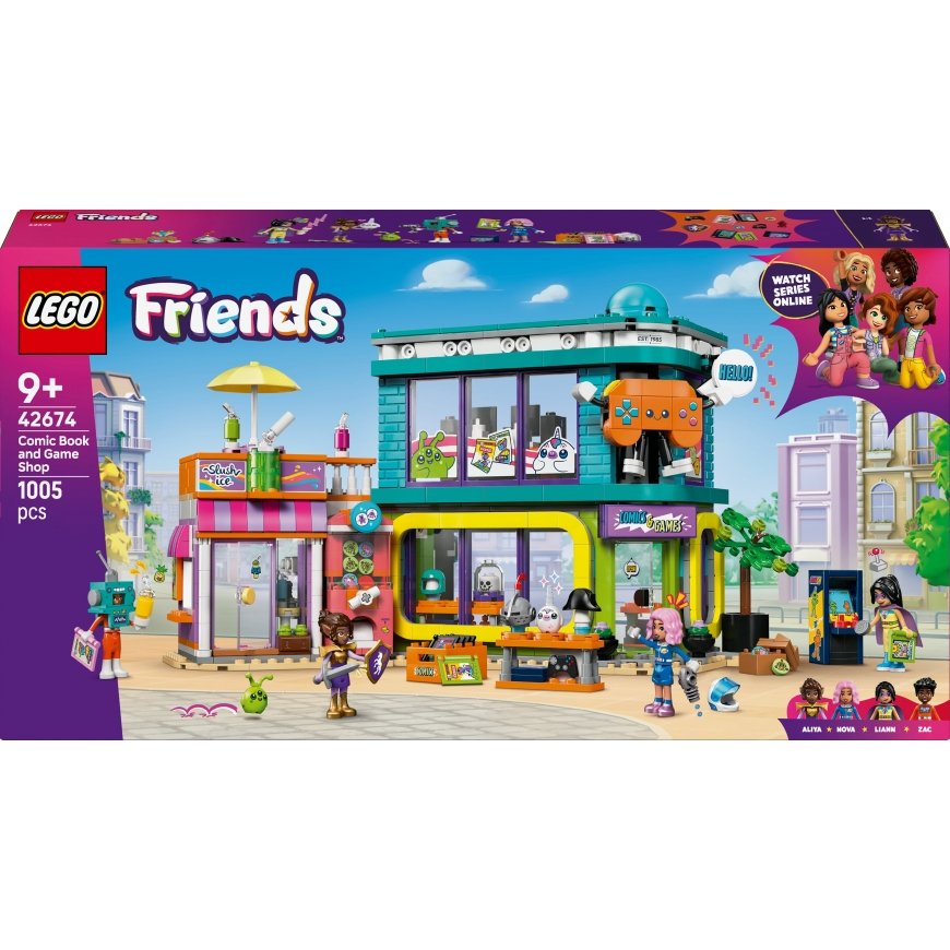 Pay 5x27.80€The comic and game store toy includes 4 mini dolls as well as LEGO® brick-built space creature and unicorn plush toys for role-playing.