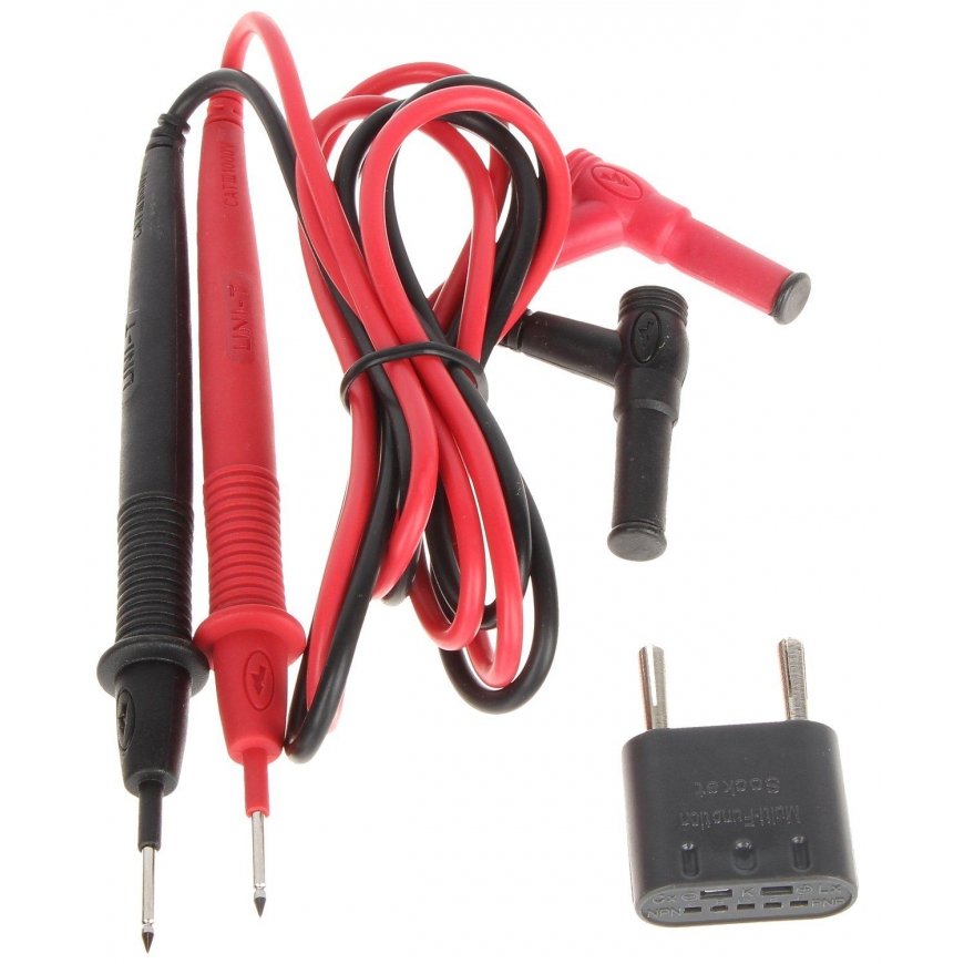 Mokėjimai 5x24.00€Multimetras leidžia matuoti nuolatinę įtampą iki 1 kV, o kintamąją - iki 750 V, nuolatinę ir kintamąją srovę iki 20A, varžą ir talpą. Imontuotas garsinis signalizatorius skirtas tikrinti grandinėss tęstinumą. Prietaiso funkcija yra išsaugoti paskutinį matavimo rezultatą ir patikrinti diodus. Multimetras maitinamas 9 V baterija, kuri taip pat yra komplekte. Skaitmeninis indikatorius praneša apie jos iškrovos lygį.