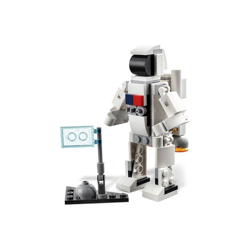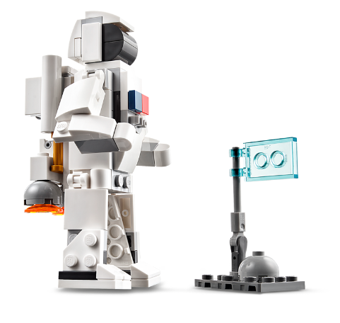 Su šiuo LEGO Creator 3in1 rinkiniu kosmoso gerbėjai gali sukonstruoti 3 skirtingus modelius ir su jais žaisti. Galima sukonstruoti daugkartinį erdvėlaivį, o tada jį perkonstruoti į lanksčią astronauto figūrėlę su reaktyvine kuprine ir vėliava arba į įspūdingą kosminio laivo modelį.