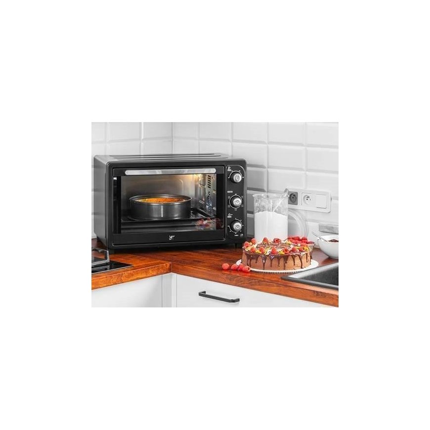 Mėgstate naminius kepinius, tačiau jūsų virtuvėje nėra vietos klasikiniams didelio dydžio baldams? Tai nereiškia, kad turite atsisakyti mėgstamų patiekalų – tereikia LAFE elektrinės orkaitės, kuri siūlo pažangias įvairių patiekalų ruošimo galimybes. LAFE orkaitė greitai įkaista ir tolygiai paskirsto šilumą. Padėkite jį ten, kur norite, ir pradėkite kepti! • Talpa 50 L. • Maksimali galia 2000 W. • Apšviestas salonas. • Konvekcija. • Temperatūros reguliavimas. • Besisukantis iešmas. • Reguliuojamas termostatas. Du kepsniai vienu akmeniu Didelė LAFE įrenginio talpa, iki 50 L, leis paruošti iki dvigubai daugiau patiekalų nei standartinėje mini orkaitėje. Rinkinyje yra grotelės ir kepimo skarda, todėl vienu metu galėsite gaminti dviejuose lygiuose – viršuje ir apačioje. Kaip ir tradicinėse orkaitėse, padėklų aukštis yra reguliuojamas, todėl LAFE įrenginio vidų lengva pritaikyti prie konkretaus patiekalo, kurį ketinate jame ruošti. Patogumas ir universalumas Maksimali galia, kurią galite nustatyti orkaitėje, yra iki 2000 W, todėl vakarienei galėsite lengvai paruošti picą, skanius mielinius suktinukus ar aromatingą vištieną. Platus temperatūros nustatymų diapazonas (60-240°C) paverčia LAFE orkaitę išties universaliu prietaisu – ja galėsite džiovinti grybus, ruošti mėgstamą pyragą ar apkepą, taip pat kepti naminę duoną. Puikiai paruošti patiekalai LAFE mini orkaitė gali drąsiai konkuruoti su klasikine virtuvės įranga. Dėl karšto oro funkcijos karštas oras tolygiai paskirstomas prietaiso kameroje, kruopščiai skrudindamas maistą iš visų pusių. Nereikia jaudintis dėl to, kad apetitą keliantis kepsnys viduje pasirodys žalias – galite pasitikėti LAFE įrenginiu. Ar norite paruošti išskirtinę žąsį šeimos vakarienei? Tam naudokite prie orkaitės pritvirtintą sukamąjį iešmą – ši parinktis leis paruošti puikiai iškeptą mėsą tradicine forma, iš keptuvės, taip pat iš kepsninės. Patogumas visų pirma LAFE orkaitė yra ne tik funkcionalus įrenginys, bet ir paprastas bei patogus naudoti. Eksploatacijos metu prietaiso vidus yra apšviestas, todėl galėsite kontroliuoti probleminių kepinių, pavyzdžiui, mielinės tešlos, ruošimo procesą. Įrenginyje yra laikmatis, todėl kepdami galėsite susikoncentruoti į kitą veiklą – jam pasibaigus, orkaitė automatiškai išsijungs ir apie tai praneš garso signalu. Be to, indikatoriaus lemputė informuos apie įrenginio būseną, kurios dėka visada laiku sužinosite apie galimą gedimą.