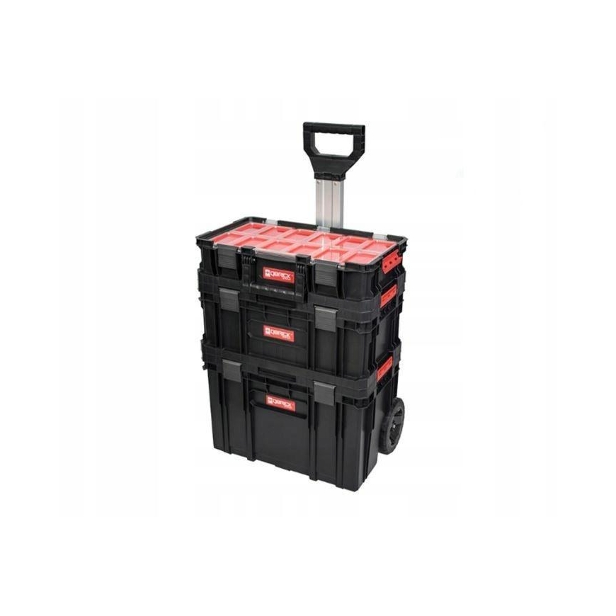 "Qbrick System Two Set Plus" sudaro "Cart Plus" dėžė, "Toolbox Plus" modulinė dėžė ir "Container Organiser Plus". Rinkinio sudedamosios dalys yra beveik identiškos dviejų rinkinių sudedamosioms dalims. Pasikeitė tik tvirtinimo detalių medžiaga. Naujose dėžutėse tvirtinimo detalės pagamintos iš poliamido. Visas rinkinys - tai praktiškas sprendimas, kaip patogiai ir saugiai transportuoti ir laikyti daugybę priedų ir elektrinių įrankių. "Qbrick" neužima daug vietos, tačiau leidžia vienoje vietoje surinkti daug įrankių. Kadangi rinkinį sudaro skirtingų dydžių ir paskirčių dėžės, palaikyti tvarką namų garaže ar dirbtuvėse neturėtų būti problema.