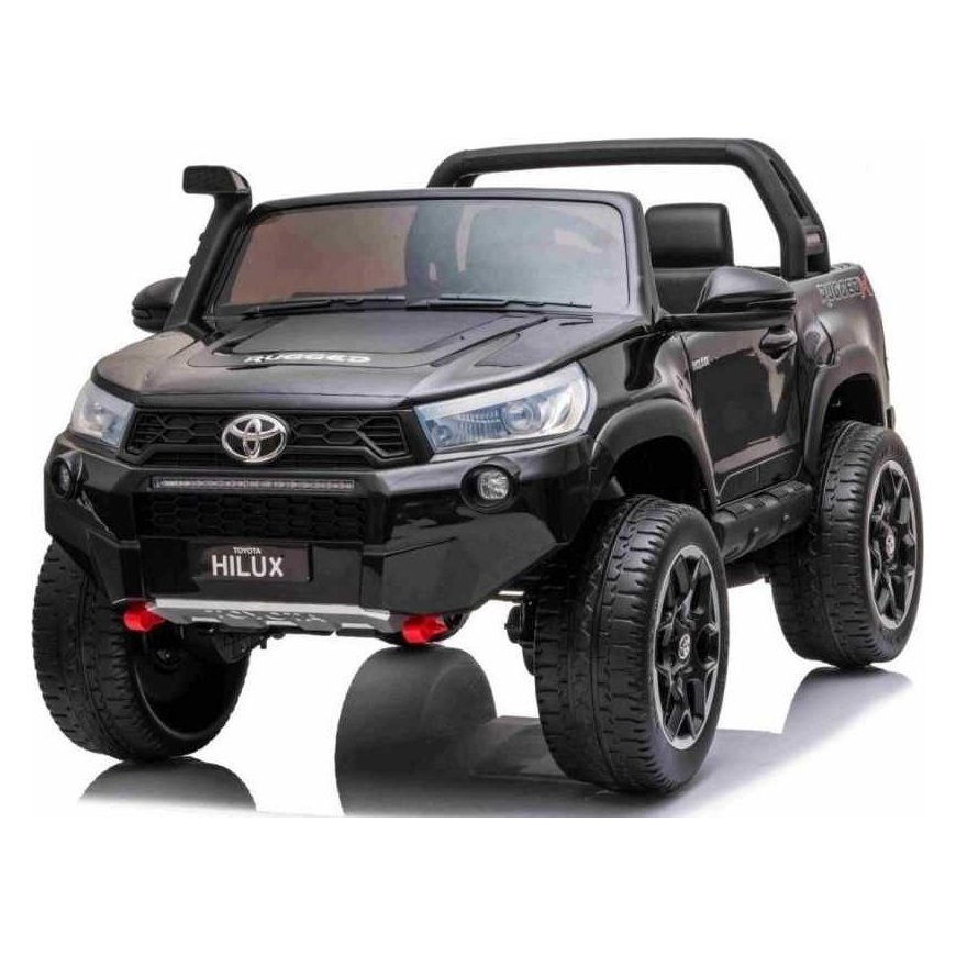 Specyfikacja Toyota Hillux Silnik 4 x 45W, Napęd 2 Tryby - napęd 4 lub 2 Silniki (przełącznik), Akumulator 2 x 12V/7Ah, Pilot 2.4G, Przycisk bezpieczeństwa STOP, 3 szybkości, Koła Piankowe koła EVA, Średnica 32 cm, Szerokość 13 cm, Amortyzatory Tył/Przód Biegi Wolny Start, Przód/Tył, Światła Światła LED, Przód, Tył, Włącznik w stacyjce, Wyposażenie Panel Audio Panel nowego typu z trybem "SPORT" (odgłosy pojazdu po wciśnięciu pedału gazu), Wejście na karty pamięci, AUX (możliwość podłączenia mikrofonu), USB, Bluetooth, MP3, Radio FM, Klakson w kierownicy, Wskaźnik naładowania baterii Tak, Start 2 pozycyjny kluczyk, Siedzenie Czarna ekoskóra, Pasy bezpieczeństwa, 51 x 18 x 28 cm, Bagażnik otwierana maska przednia ze schowkiem 52x27x24 cm, bagażnik tylni 53x24x18 cm Otwierane Drzwi Tak, Uchwyt Transportowy Rączka Transportowa z tyłu, Wymiary Rozmiar Pojazdu Długość 137 cm, Szerokość 96 cm, Wysokość 72 cm, Waga Pojazdu 31 Kg, Rozmiar Kartonu 139 x 76 x 52 cm, Waga Kartonu 37 Kg, Maksymalne Obciążenie 50 Kg, Prześwit 23 cm, Wyposażenie Dodatkowe Instrukcja + Zestaw Montażowy Ładowarka Pokrowiec Na Pojazd, Kabel MiniJack Pilot R/C
