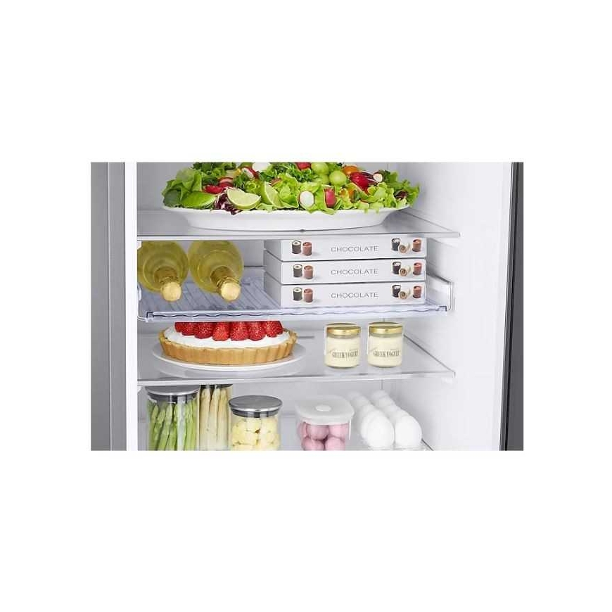 Nowy Space Max Pojemność 390 l ( chłodziarka 276 l, zamrażarka 114 l ) Wi-Fi- połączenie z aplikacja SmartThings AI Energy Mode- nawet o 15% mniej zużycia energii No Frost - Koniec z rozmrażaniem i oszronioną żywnością System All-Around Cooling Równomierne chłodzenie w każdym zakamarku lodówki, bez pozostawiania tzw. martwych stref Cool Silent Mniej hałasu w Twoim domu Humidity Fresh+ Szuflada z kontrolą wilgotności Optymalna wilgotność i świeżość na dłużej Clean Back Rozwiązania opracowane z myślą o higienie i bezpieczeństwie. Komora zero Optimal Fresh+ Dwukrotnie dłuższa świeżość i elastyczność przechowywania Funkcje Power Cool & Power Freeze Klasa efektywności energetycznej: E Digital Inverter Cicha praca i mniejsze zużycie energii - trwałość potwierdzona 20-letnią gwarancją Szuflada Humidity Fresh+ zapewnia wyjątkowe warunki o wysokim poziomie wilgotności. Wszystko po to, by Twoje warzywa i owoce pozostały dłużej świeże, bez utraty wartości odżywczych, chrupkości, zapachu czy smaku. Prosta regulacja wilgotności dostosuje optymalny poziom do przechowywania owoców (70%) lub warzyw (80%). Unikalna konstrukcja pokrywy uszczelniającej pozwoli Ci nawet dwa razy dłużej cieszyć się ich świeżością*. *Wewnętrzne testy porównawcze modeli RB38T775CSR oraz RB34K6232SS. Komora zero Optimal Fresh + pozwala na dwa różne sposoby użytkowania. Tryb pojedynczy, w którym ustawiona jest jedna, stała temperatura. Tryb podwójny, który pozwala na wydzielenie dwóch stref z różnym poziomem temperatur*. Lewa część z niższą temperaturą (np. -1°C) stwarza optymalne warunki do przechowywania mięsa, wędlin oraz ryb, a prawa, z wyższą temperaturą (np. 1°C), jest idealna dla owoców i warzyw**. * Ustawienia temperatur w strefach są zależne od ogólnych ustawień chłodziarki. ** Przykładowe warunki dla temperatury chłodziarki 1°C. Temperatura w lewej strefie jest obniżona o 2°C względem tej ustawionej w całym urządzeniu. Dlaczego Samsung jest lepszy?Technologia pełnego No Frost marki Samsung zapewnia stały obieg chłodnego powietrza, systematycznie usuwając nadmiar wilgoci z wnętrza lodówki. Dzięki temu lód i szron nie osadzają się na ściankach czy produktach. Żywność zachowuje świeżość i wartości odżywcze na dłużej, a utrzymanie czystości jest łatwiejsze bez rozmrażania. Funkcja Power Cool to intensywne wdmuchiwanie zimnego powietrza do chłodziarki. Szybko schłodzone produkty oraz ulubione napoje w czasie krótszym o 32%. Funkcja Power Freeze ustawia temperaturę w zamrażalniku na najniższy poziom i uruchamia intensywny nadmuch zimnego powietrza. Dzięki temu zrobisz kostki lodu lub głęboko zamrozisz żywność w czasie szybszym nawet o 35%. Cechy UnikalneNowa konstrukcja lodówki oraz innowacyjne rozwiązania zastosowane w naszym niezawodnym kompresorze zapewniają jego wydajność i cichą pracę. Nowe technologie Samsung redukują odgłosy i drgania urządzenia, dzięki czemu jest to jedna z najcichszych lodówek na rynku osiągając poziom jedynie 35 dB Swobodnie wsuwaj i wysuwaj półkę, gdy sięgasz po rzeczy umieszczone głębiej w lodówce lub chcesz postawić w niej wysoki pojemnik czy butelki. Dzięki temu rozwiązaniu utrzymasz porządek, a produkty będą zawsze pod ręką! System All-Around Cooling delikatnie i równomiernie rozprowadza chłodne powietrze w całym urządzeniu. Nowa linia lodówek Samsung zapewnia skuteczniejsze i łatwiejsze chłodzenie wszędzie tam, gdzie wymaga tego żywność. Precyzyjnie, szybko i w każdym zakątku Twojej lodówki. Stylowy design jest widoczny w najmniejszych szczegółach płaskie drzwi, ukryte uchwyty, dekoracyjna rączka czy subtelne wykończenia detali są kwintesencją minimalistycznej elegancji. Idealnie wpasują się do wnętrza każdej kuchni.