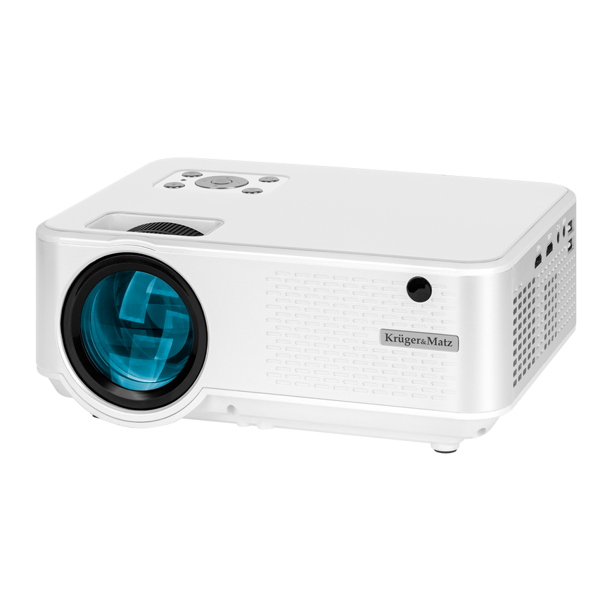 Projektor multimedialny Kruger&Matz został wyposażony w dwa pokrętła, którymi wygodnie dostosujesz ustawienia obrazu do własnych wymagań. Pierwszym ręcznie ustawisz ostrość, natomiast drugie pozwoli na korekcję zniekształceń trapezowych.