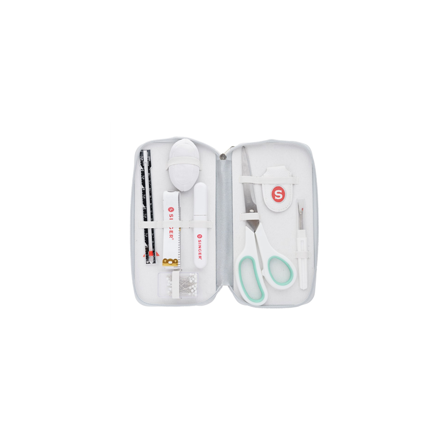 Aukščiausios kokybės žinomo "Singer" prekės ženklo siuvimo rinkinys, kurį sudaro 8 vienetai kokybiškų siuvimo įrankių. Užsegamame sidabriniame dėkle yra visi įrankiai, reikalingi matavimui, kirpimui, prisegimui ir siuvimui.